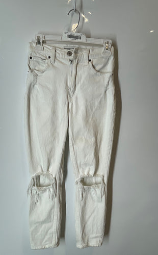Abercrombie & Fitch Womens White Distressed High Rise Mom Jeans Size 24/00R
