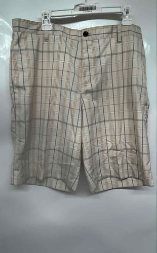 Adidas Mens Beige Plaid Print Flat Front Straight Leg Bermuda Shorts Size 36![]()  - Regular price