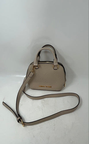 Adrienne Vittadini Womens Cream Monogram Embossed Faux Leather Crossbody Bag