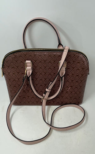 Aldo Womens Galilini Brown Pink Signature Print Double Handle Satchel Handbag