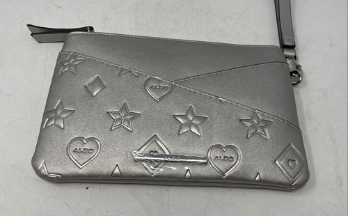 Aldo Womens Silver-Tone Geometric Print Leather Detachable Strap Wristlet Wallet