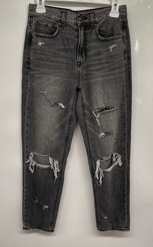 American Eagle Womens Black Cotton Denim High-Rise Distressed Mom Jeans Size 2