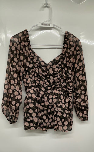 American Eagle Womens Multicolor Floral Ruched Casual Blouse Top Size Medium