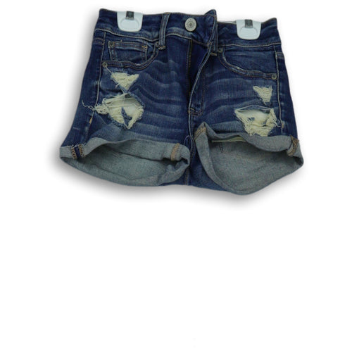 American Eagle Womens Blue Stretch Denim Distressed Cuffed Cut Off Shorts Size 2