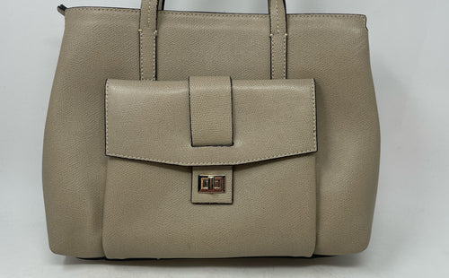 Andrea Cardone Womens Beige Leather Turnlock Front Pocket Zip Top Tote Purse