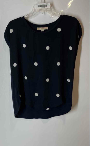 Ann Taylor Loft Womens Blue White Polka Dot Crew Neck Blouse Top Size XSP