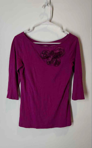 Ann Taylor Loft Womens Purple Cotton 3/4 Sleeve Pullover Blouse Top Size XS