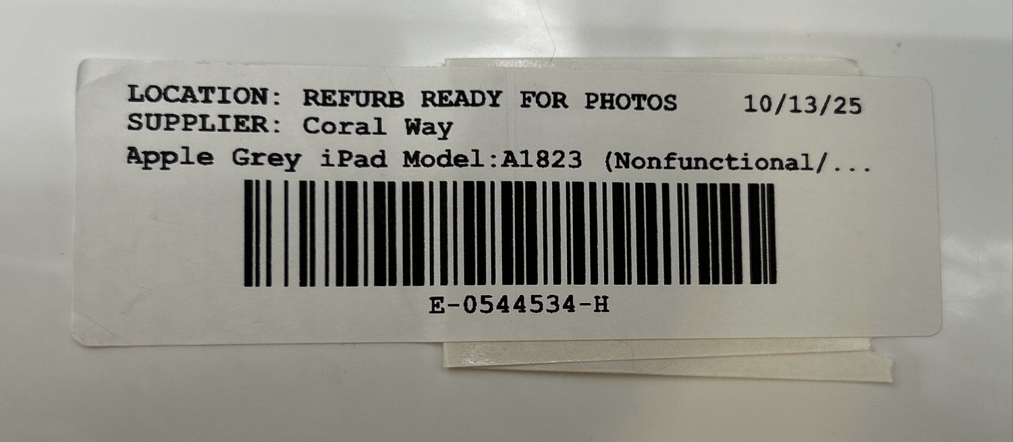 - Description: Apple iPad 5th Gen. Model A1823 Gray Tablet Nonfunctional For Parts Or Repair
