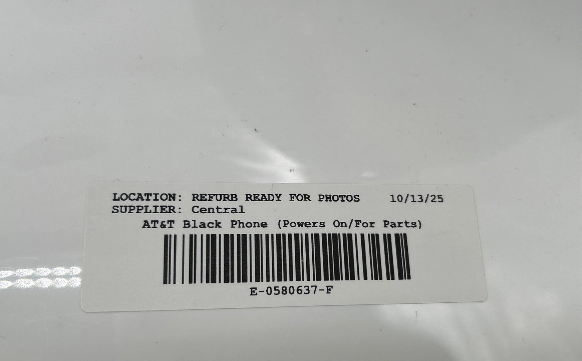 - Description: AT&T Black Touch Screen Android Smartphone Scuffed Scratched Powers On For Parts