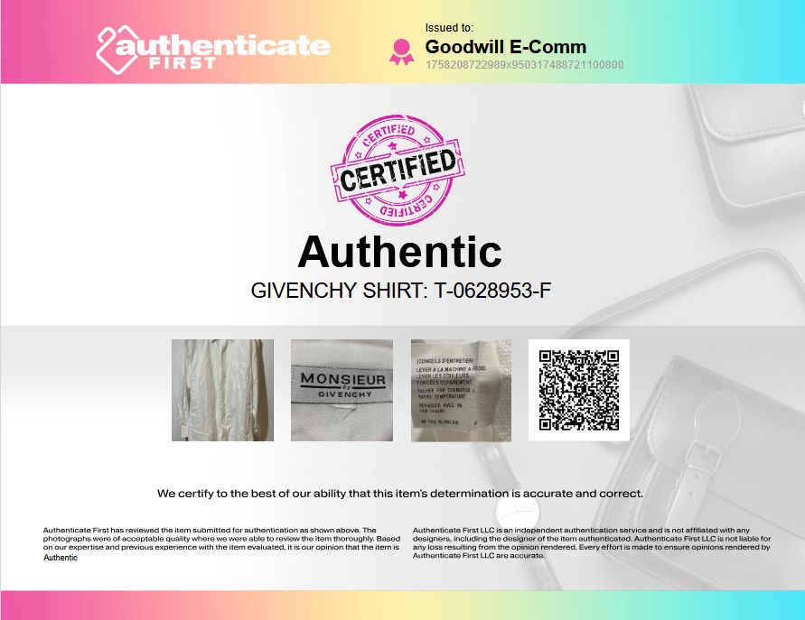 • Description: Authentic Monsieur By Givenchy Mens White Dress Shirt No Size Pit To Pit 22''