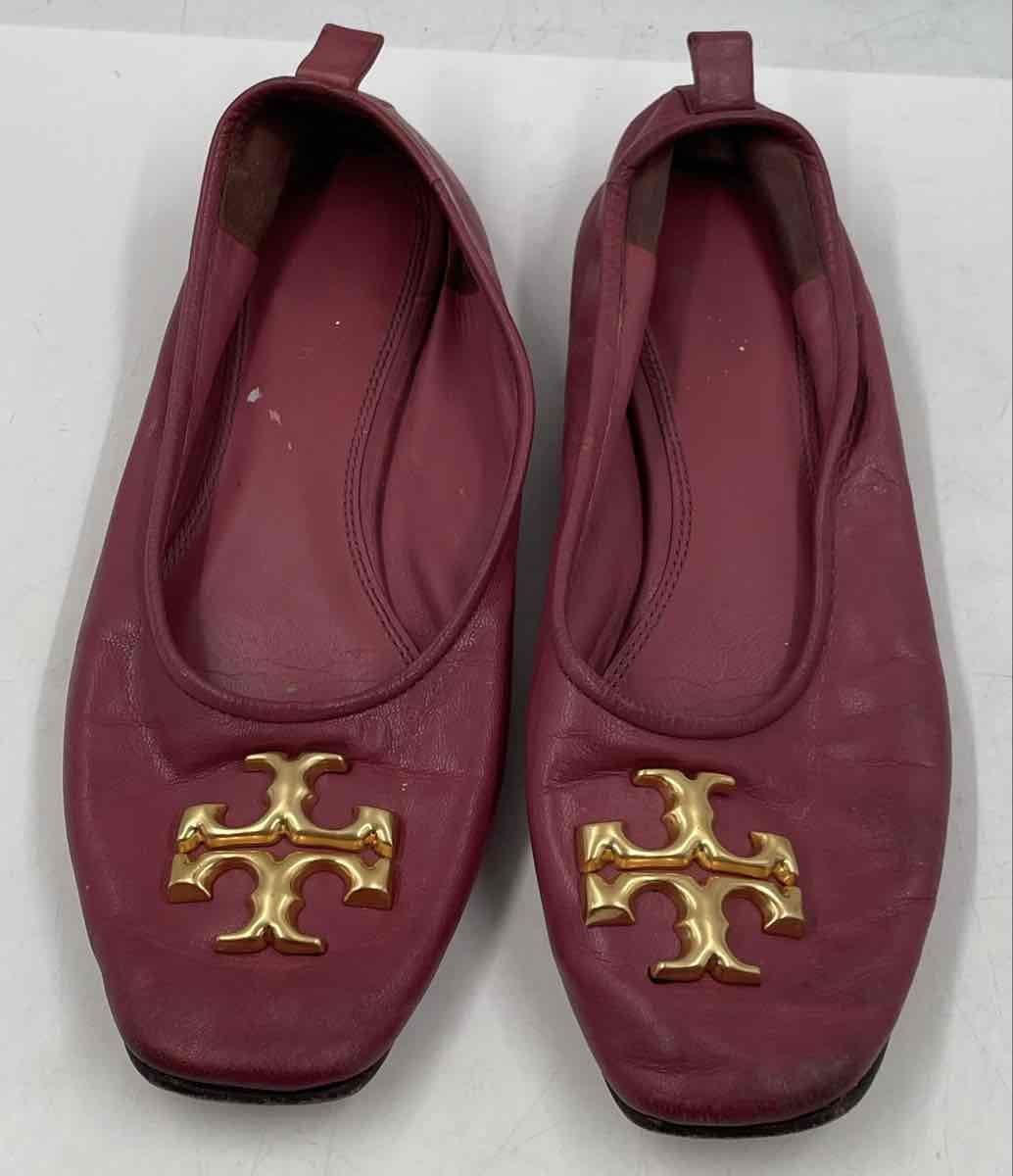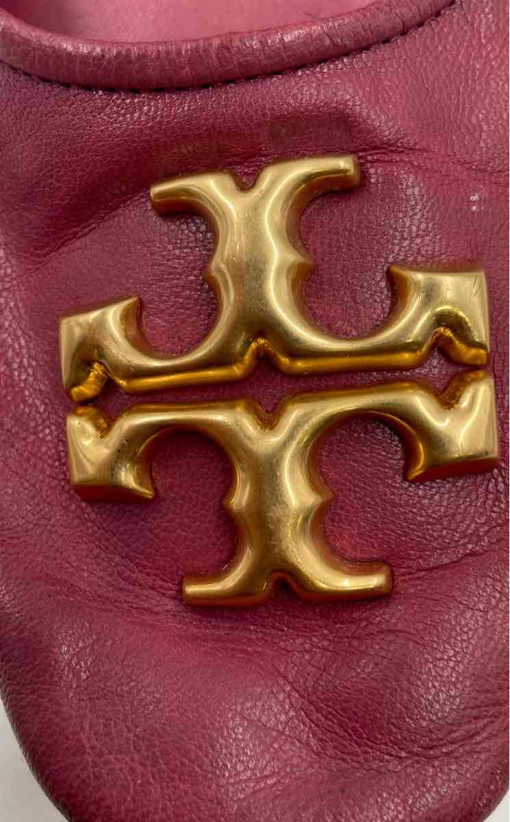 - Description: Authentic Tory Burch Womens Eleanor Dark Pink Slip-On Ballet Flats Size 7 M Worn