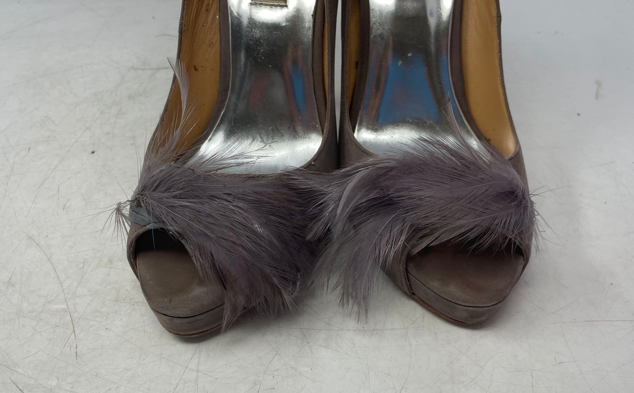 • Description: Badgley Mischka Womens Ginnie Gray Peep Toe Slip-On Stiletto Pump Heels Size 8M