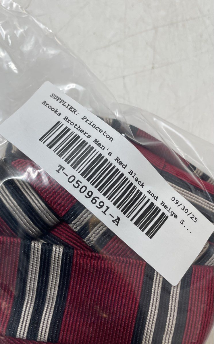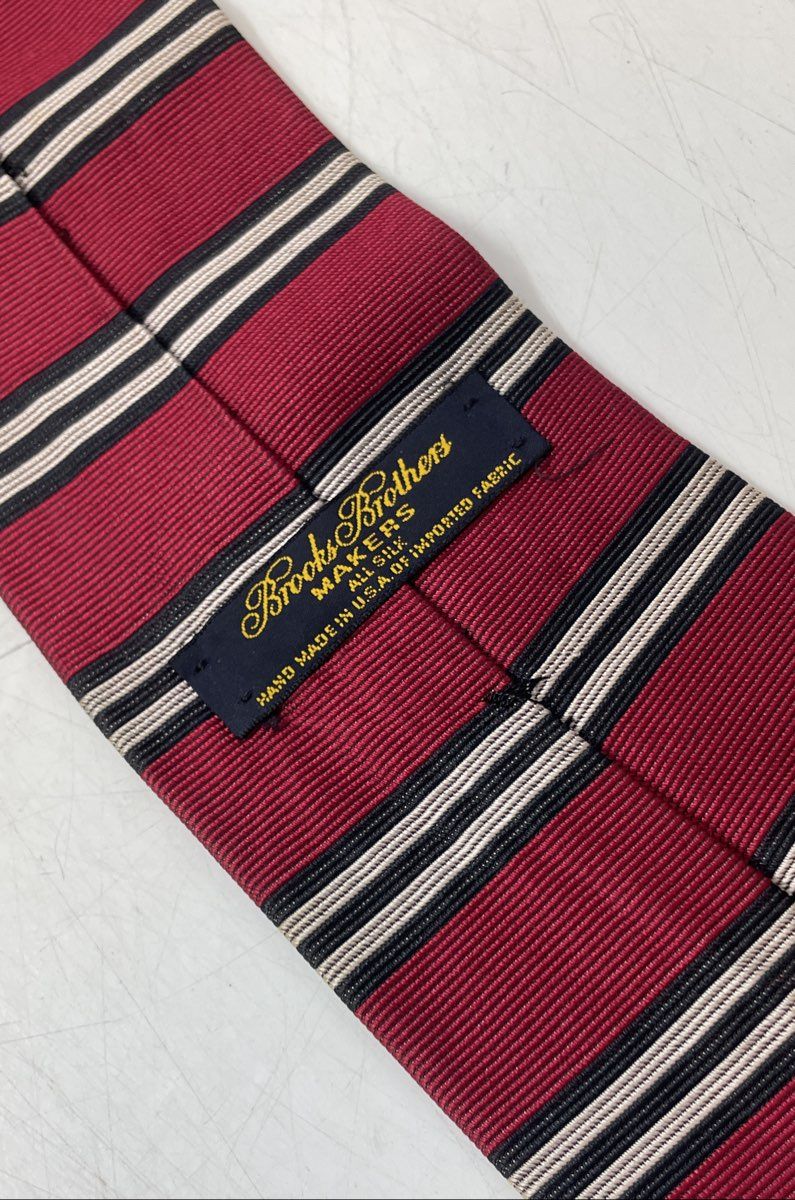 • Description: Brooks Brothers Mens Makers Red Black And Beige Striped Silk Pointed Tie
