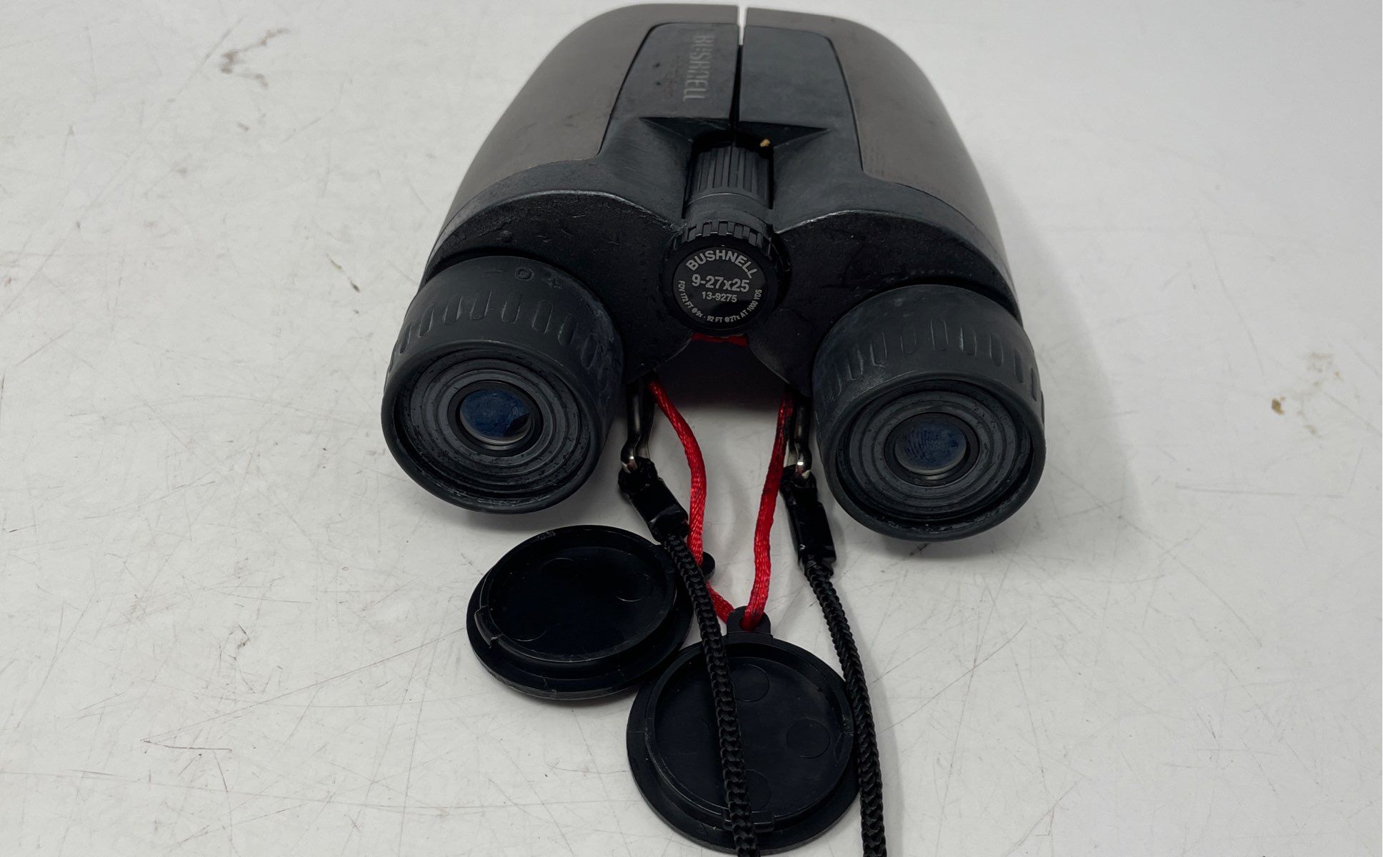 - Description: Bushnell Black Rubber Armored 27x25 Lens Hunting Binoculars In Fanny Pack