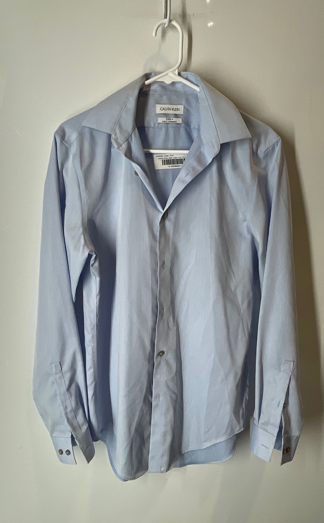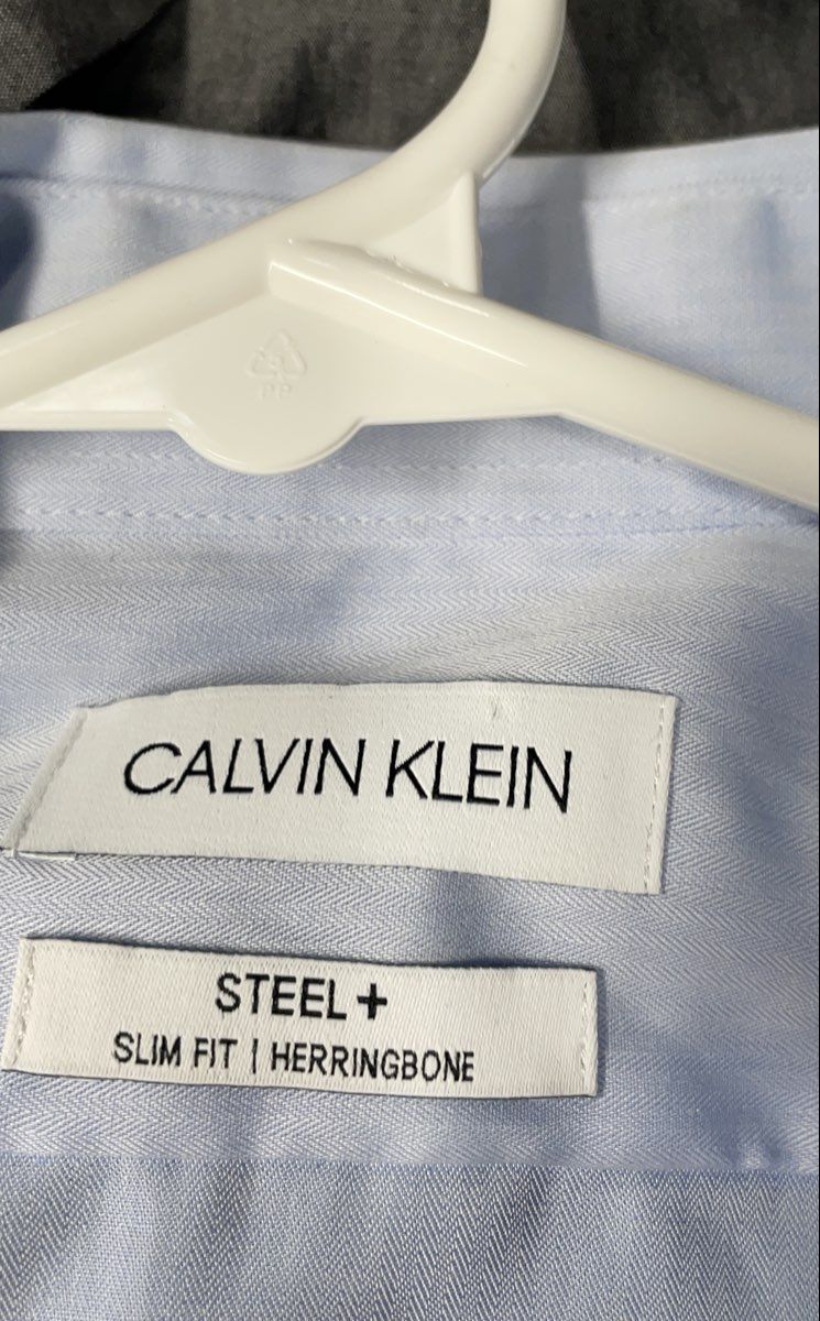 • Description: Calvin Klein Mens Light Blue Herringbone Slim Fit Dress Shirt Size 14.5 32/33