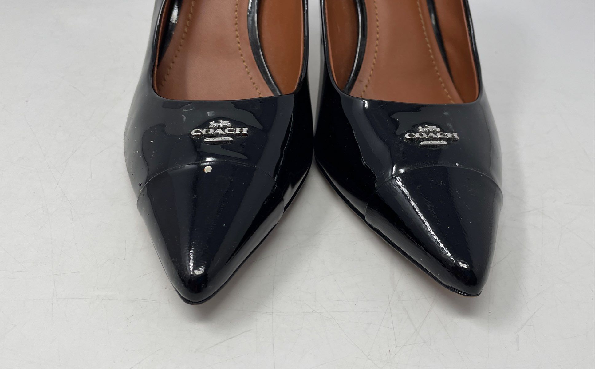 - Description: Coach Womens Black Leather Pointed Toe Slip-On Stiletto Pump Heels Size 8