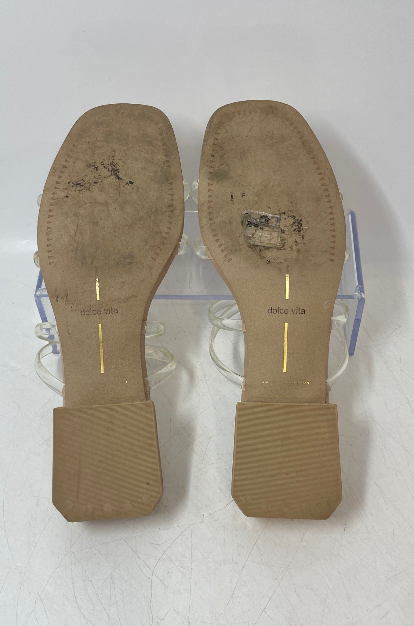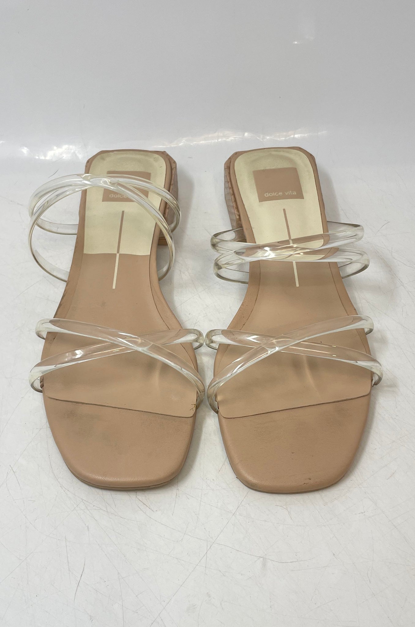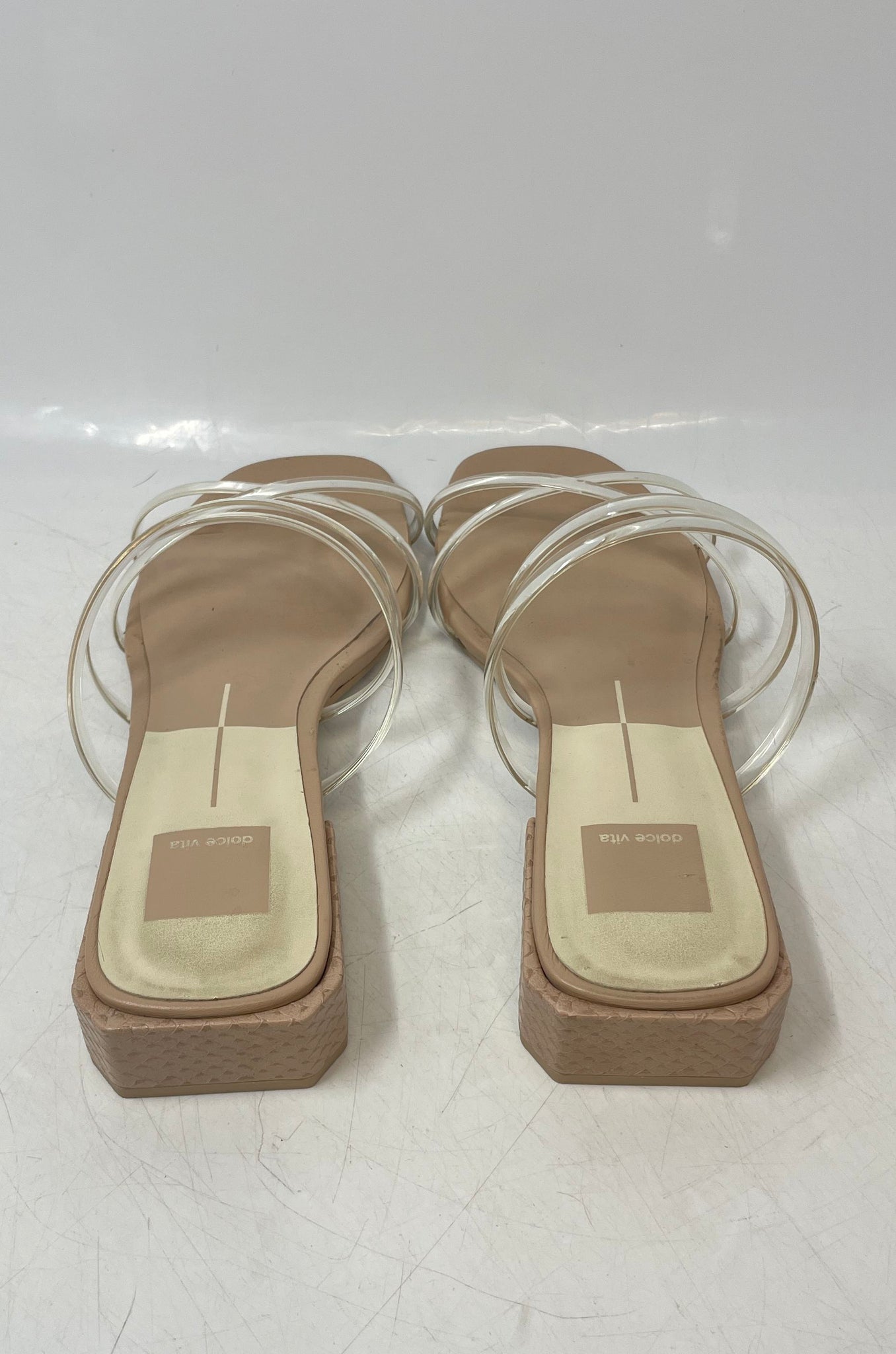• Description: Dolce Vita Womens Hapi Clears & Beige Block Slide Sandals No Size 10 Inches