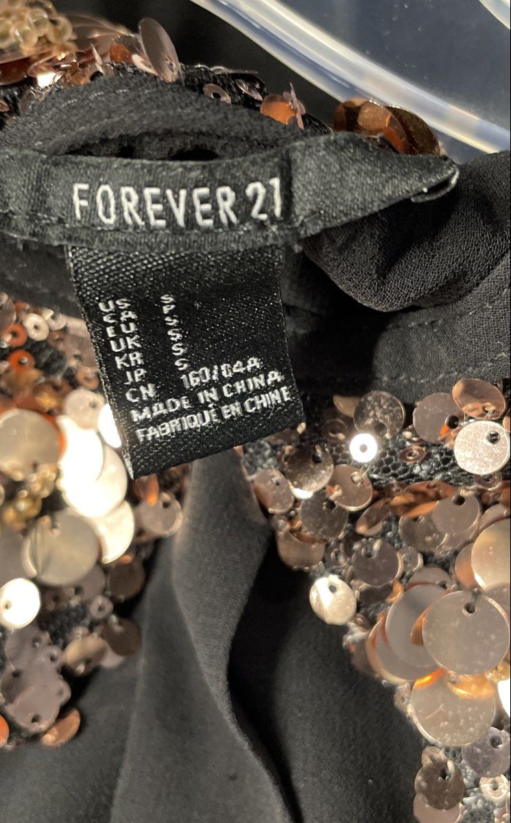 - Description: Forever 21 Womens Black Sequin Peter Pan Collar Keyhole Blouse Top Size S