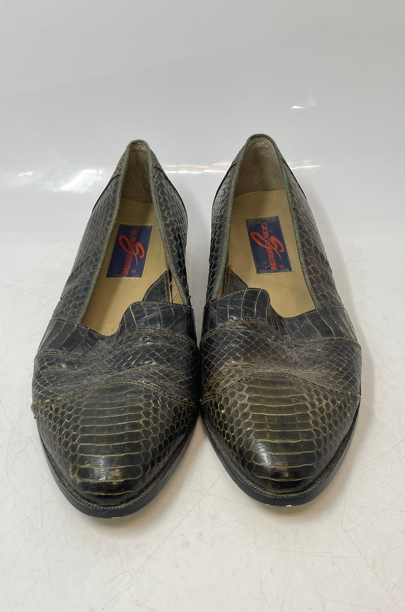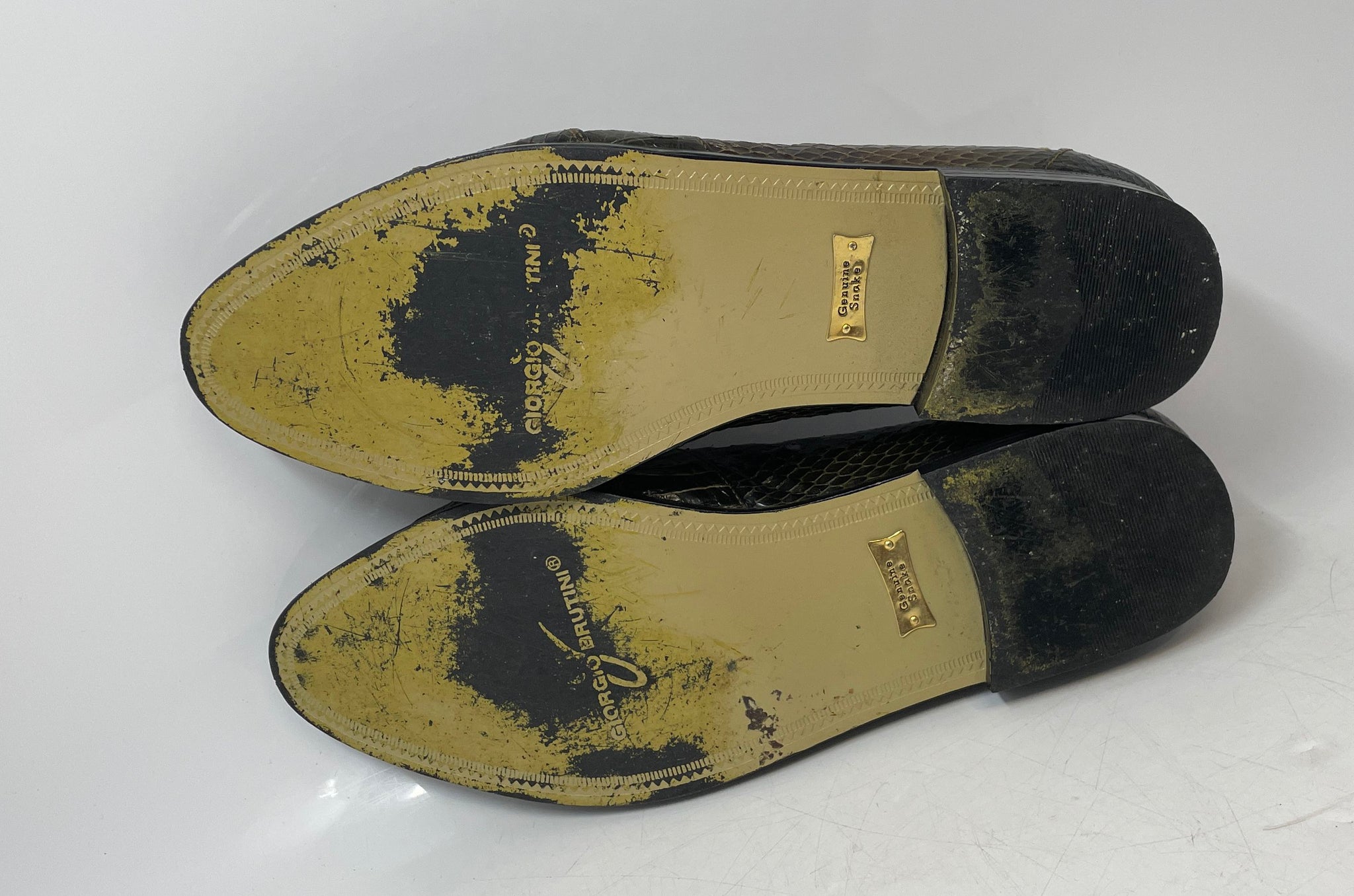 - Description: Giorgio Brutini Mens Black Leather Snakeskin Slip-On Loafers Shoes Size 10 1/2M