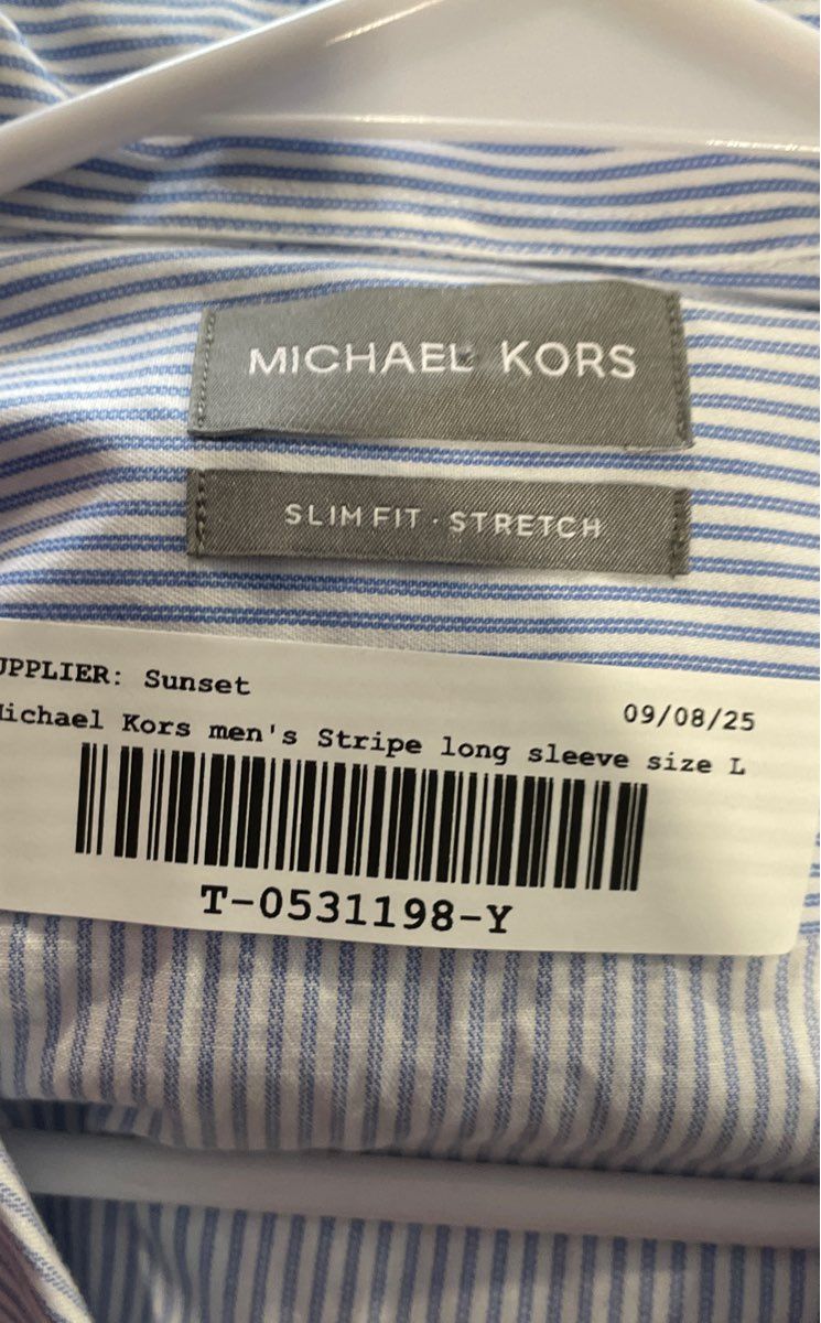 - Description: Michael Kors Mens Blue White Striped Slim Fit Long Sleeve Dress Shirt Size L