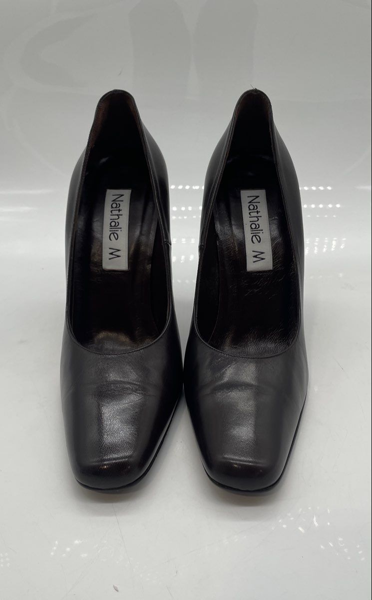 - Description: Nathalie M Womens Brown Leather Slip-On High Pump Heels Shoes Size 6B