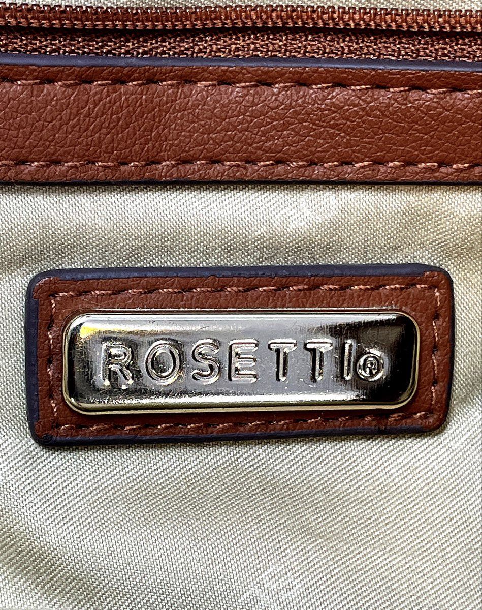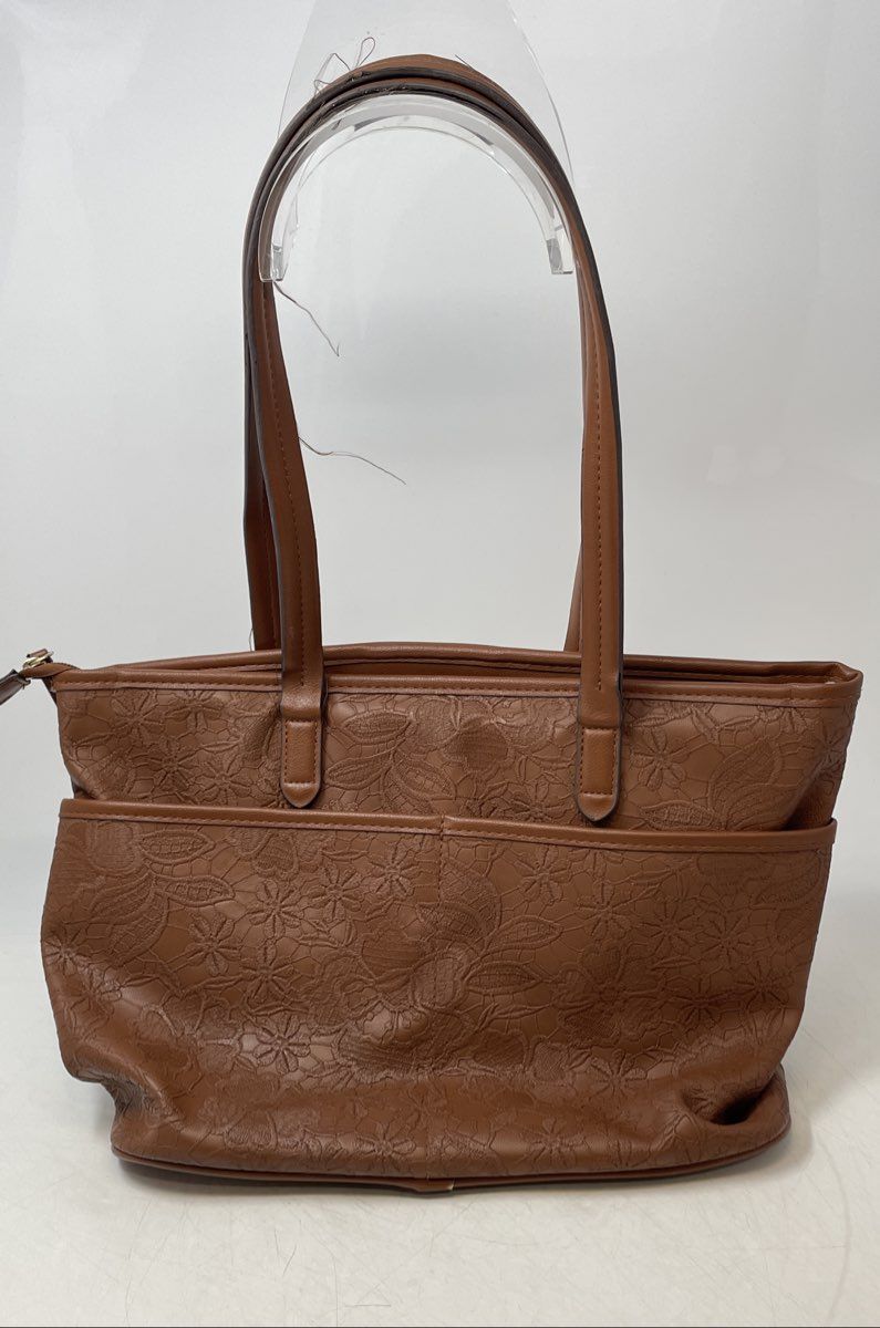 - Description: Rosetti Womens Tessa Brown Embossed Floral Faux Leather Zip Top Tote Handbag