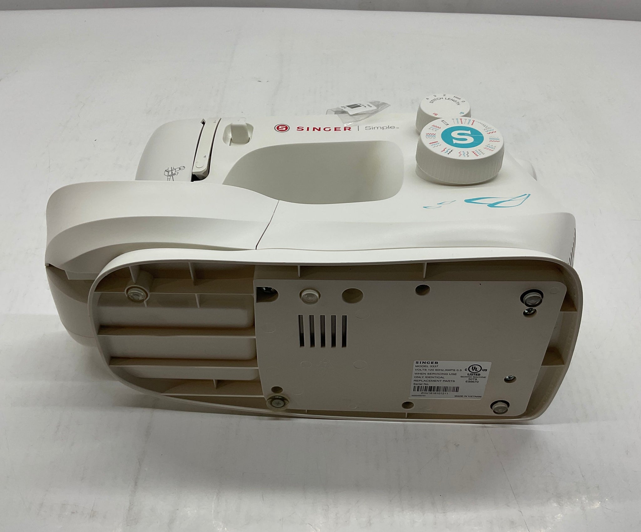 - Description: Singer Model 3337 White Simple Sewing Machine With Case Not Tested