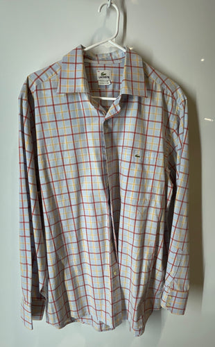Lacoste Mens Light Blue Multicolor Windowpane Collared Dress Shirt Size 44