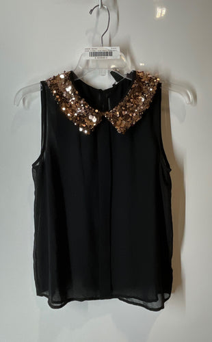 Forever 21 Womens Black Sequin Peter Pan Collar Keyhole Blouse Top Size S