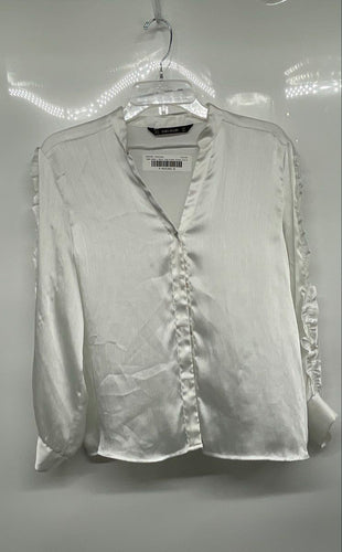 Zara Womens White Ruffle Long Sleeve Collared Button Front Blouse Top Size M