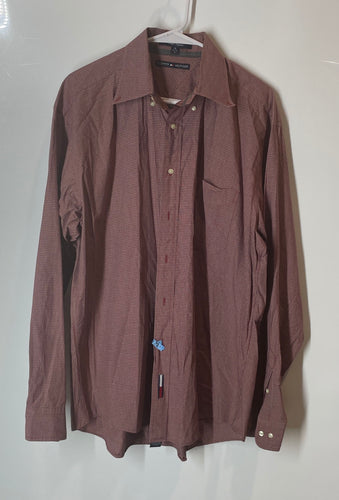 Tommy Hilfiger Mens Classics Red Plaid Print Cotton Long Sleeve Dress Shirt Sz L