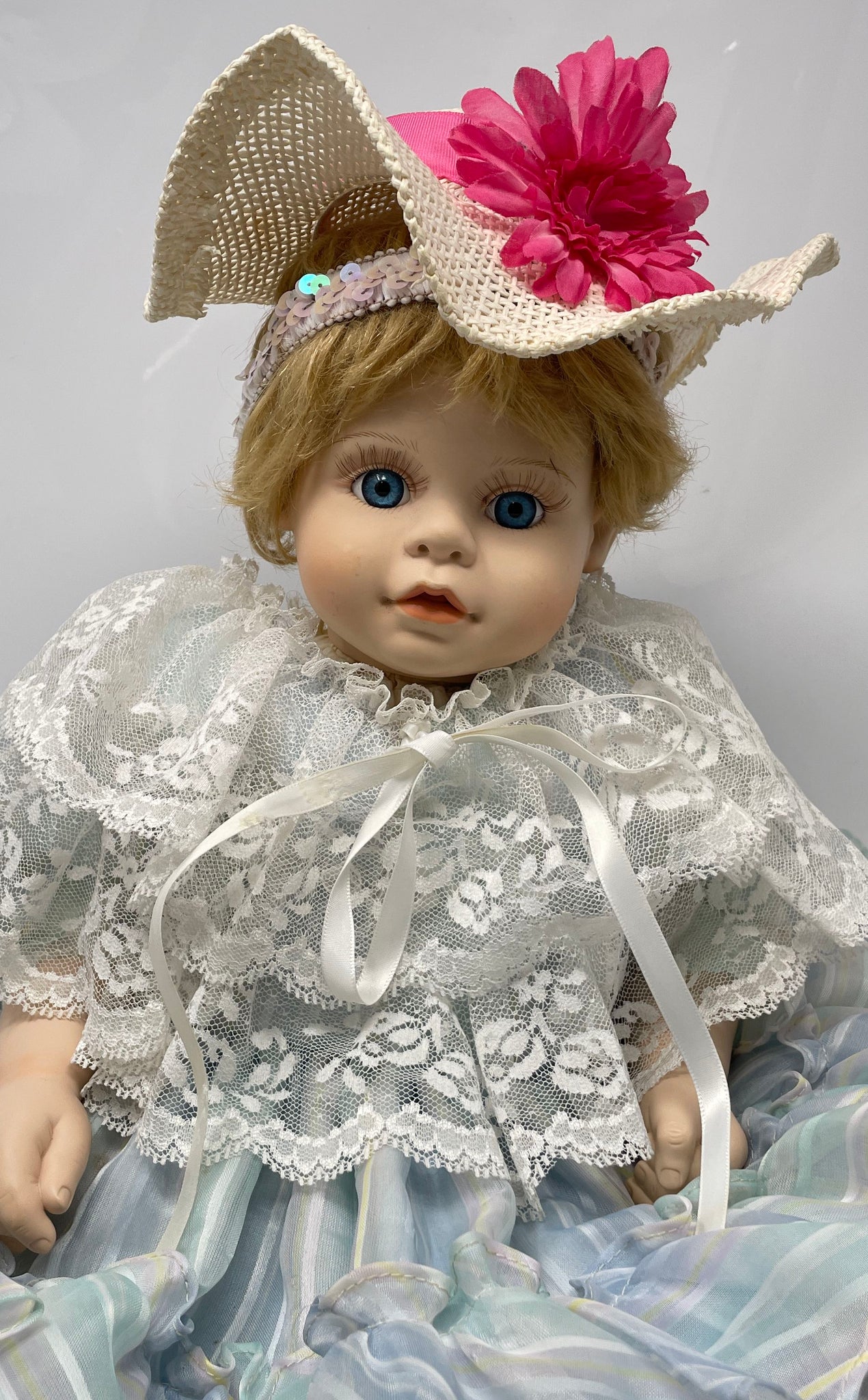- Description: 1999 Rich By Nina Blonde Hair Blue Eyes Collector Baby Girl Doll In Maxi Dress