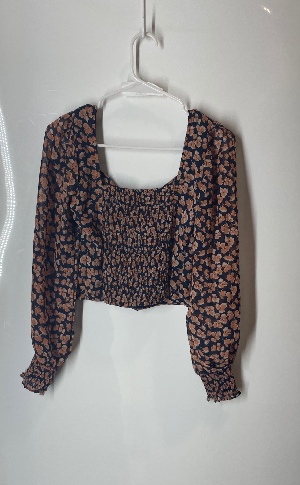 - Description: Abercrombie & Fitch Womens Blue Floral Print Long Sleeve Cropped Top Size S