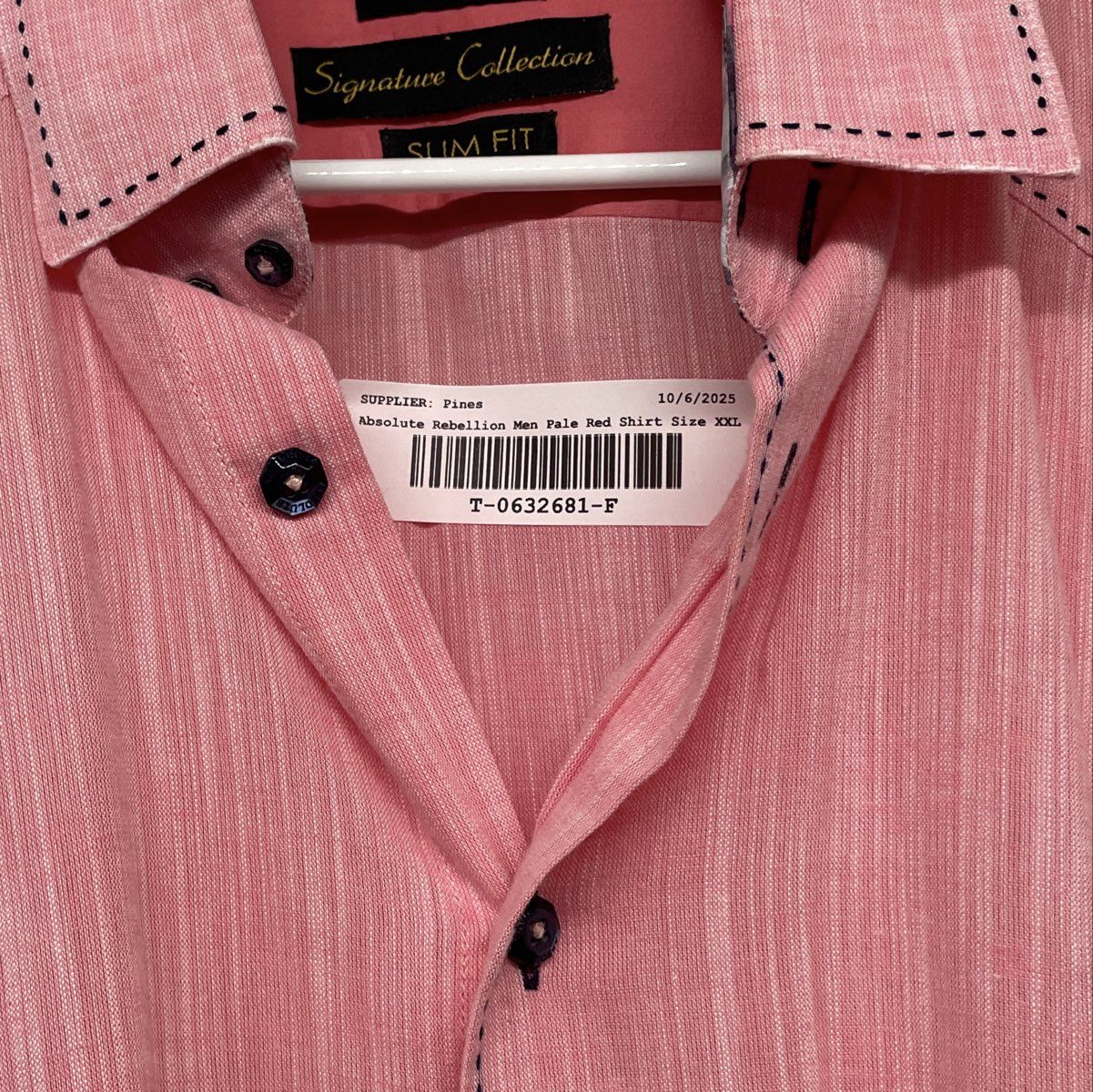 - Description: Absolute Rebellion Mens Pale Red Slim Fit Long Sleeve Button-Up Shirt Size XXL