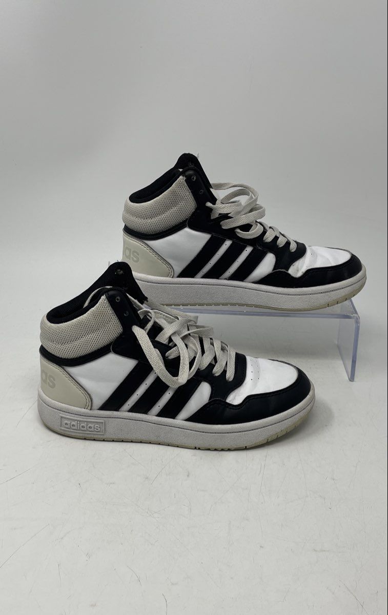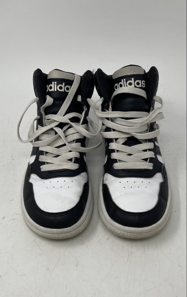 - Description: Adidas Boys Hoops 3.0 Mid IH7893 White Black Lace-Up Sneaker Shoes Size 2