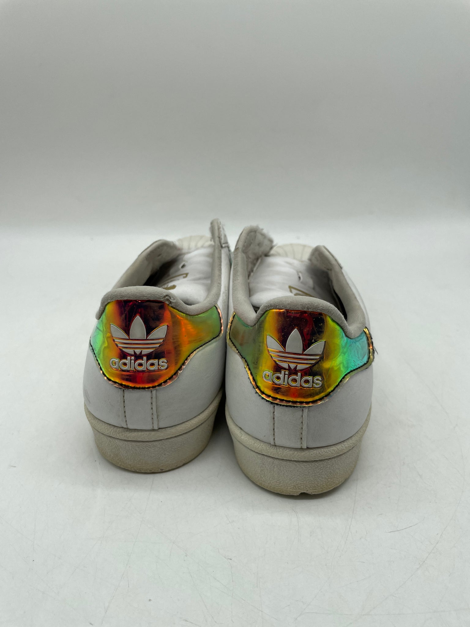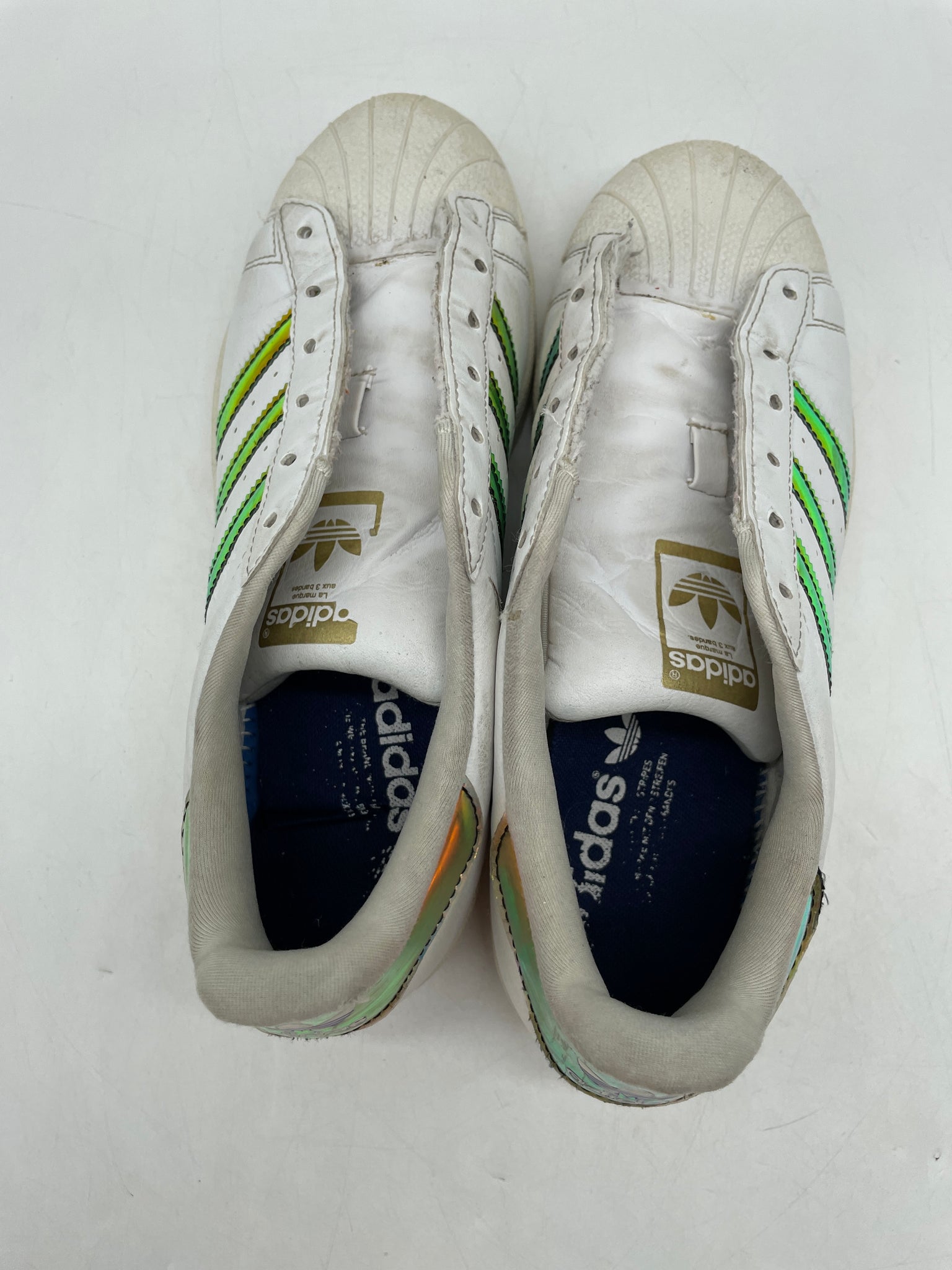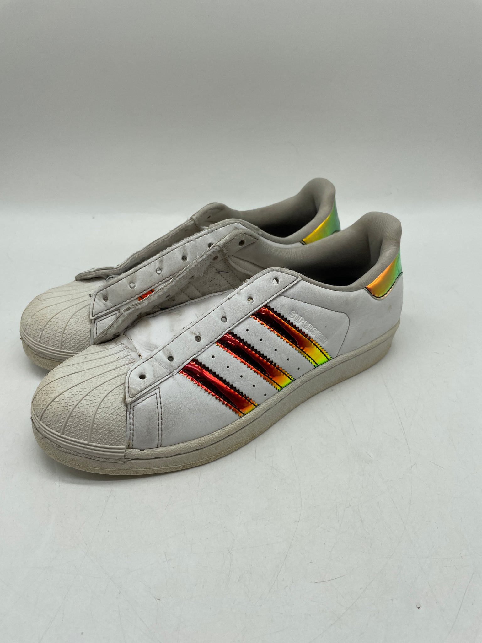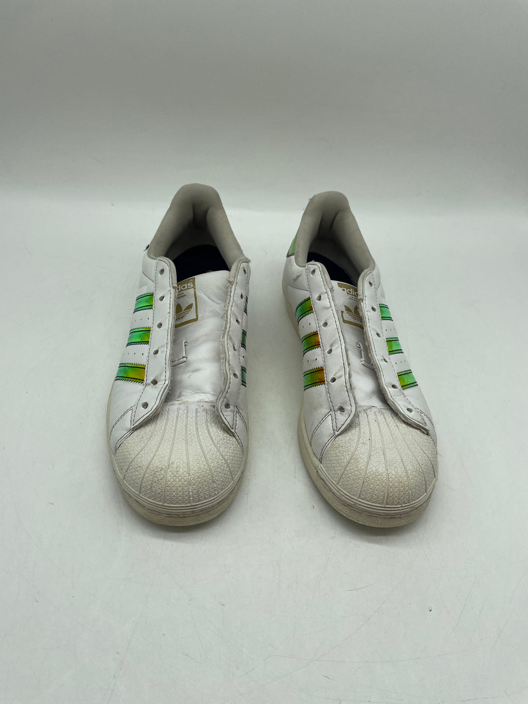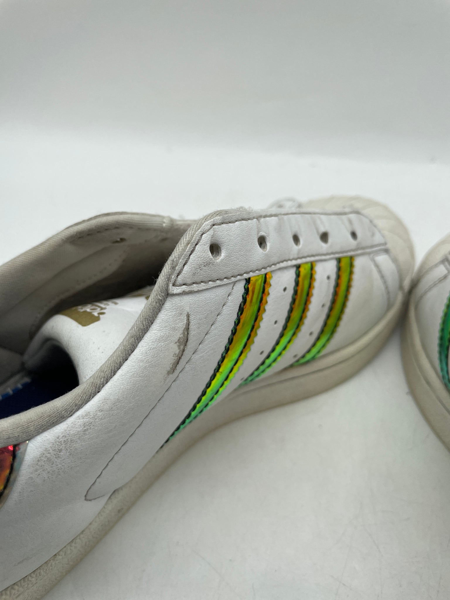 - Description: Adidas Boys Superstar White Leather Lace Up Low Top Sneakers Shoes Size 5