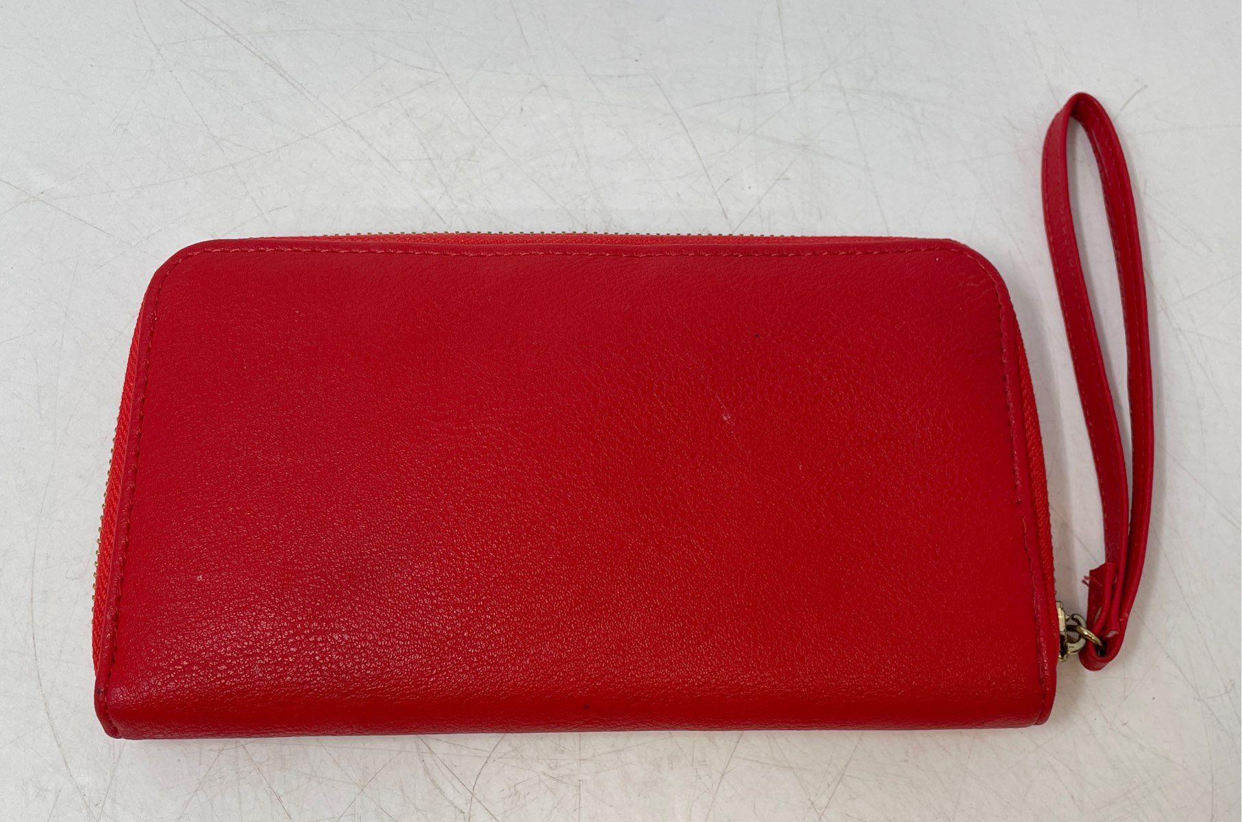 • Description: Adrienne Vittadini Studio Womens Red Faux Leather Zip-Around Wristlet Wallet