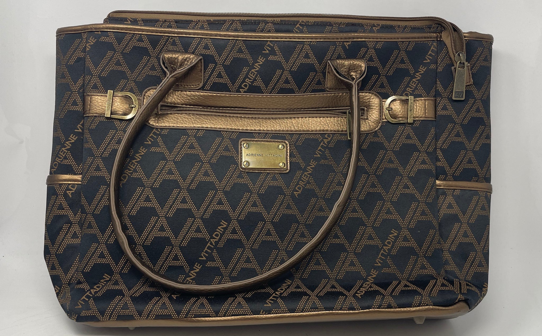 • Description: Adrienne Vittadini Womens Black Brown Signature Print Double Handle Tote Bag