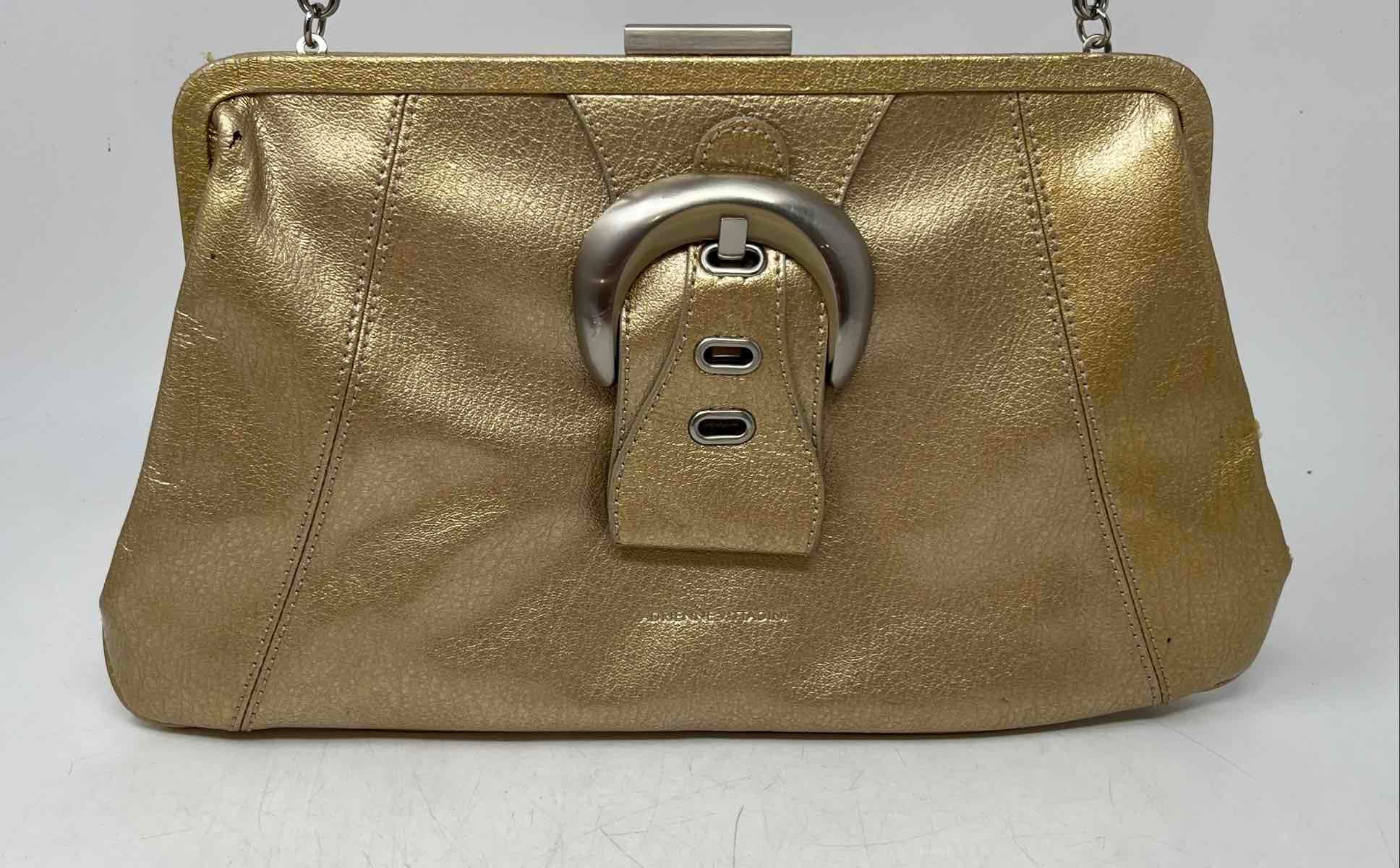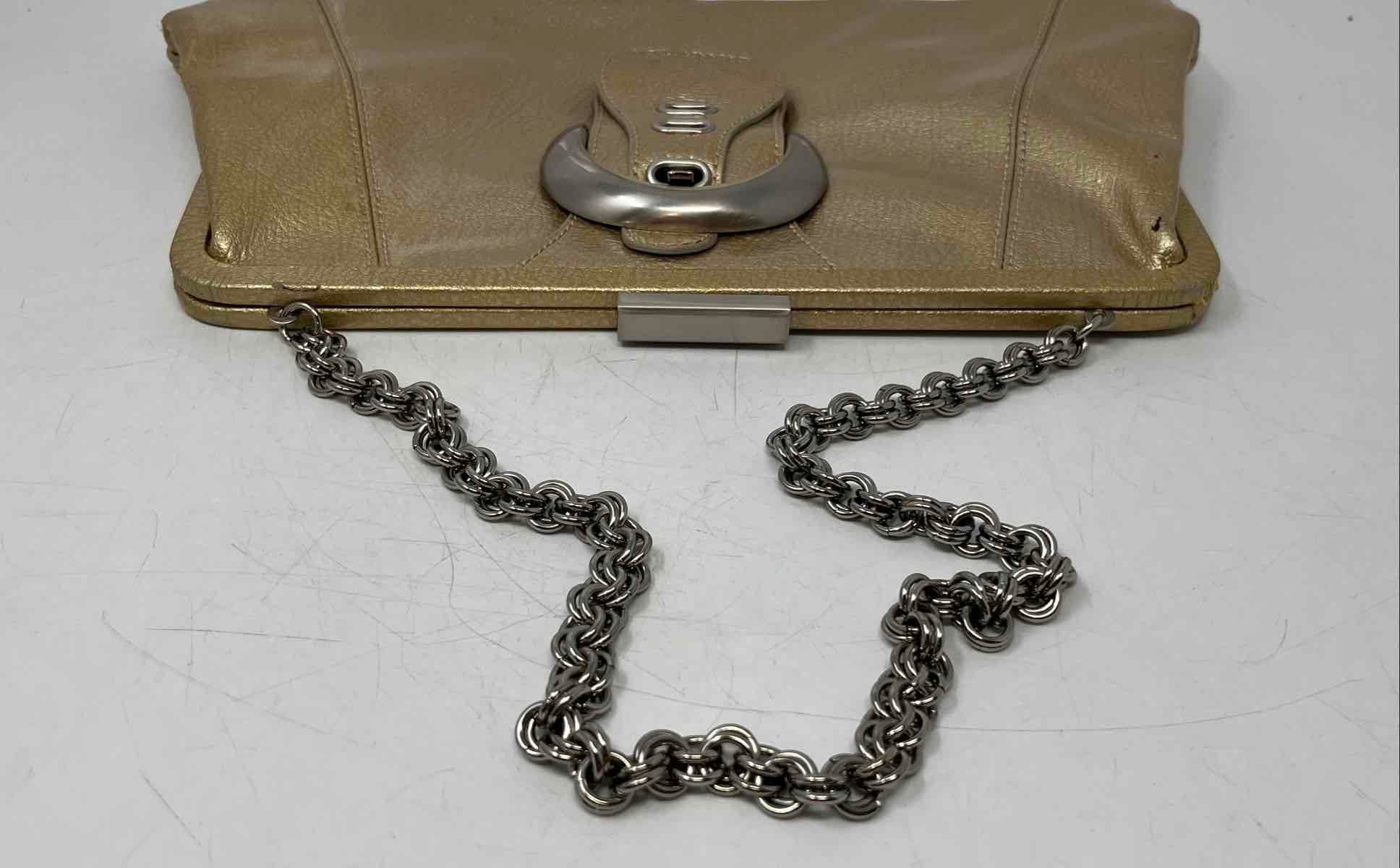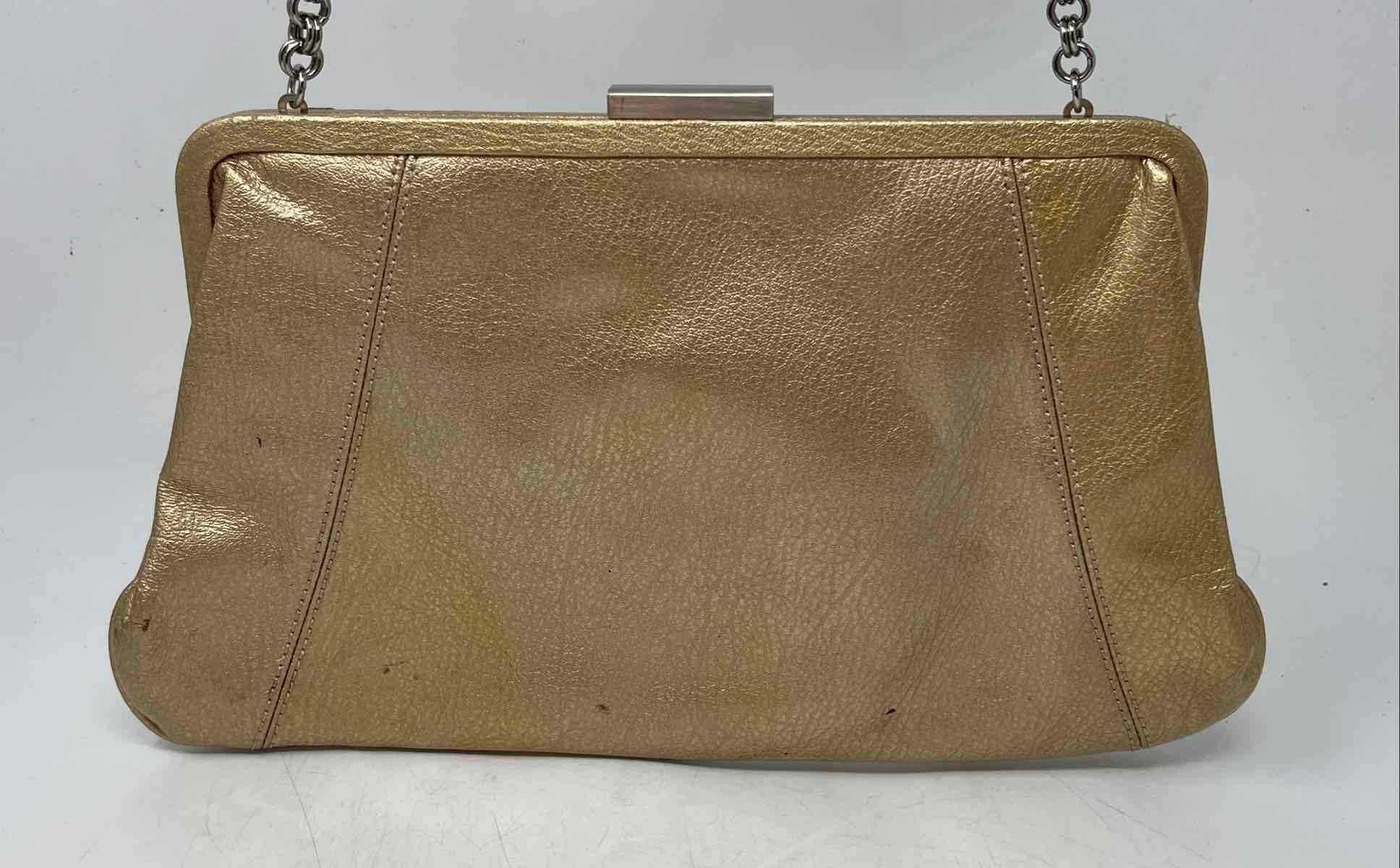 • Description: Adrienne Vittadini Womens Gold Leather Inner Pocket Chain Strap Clutch Purse