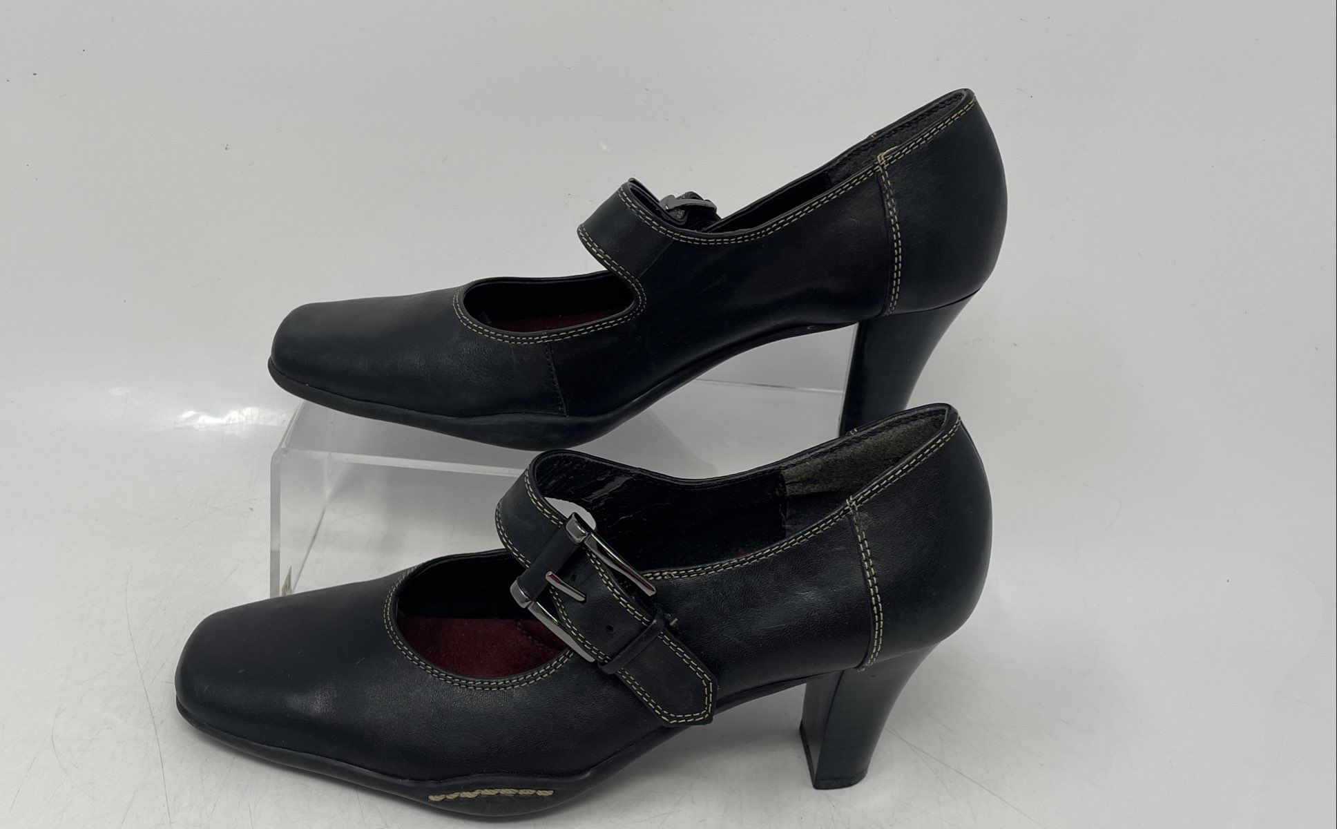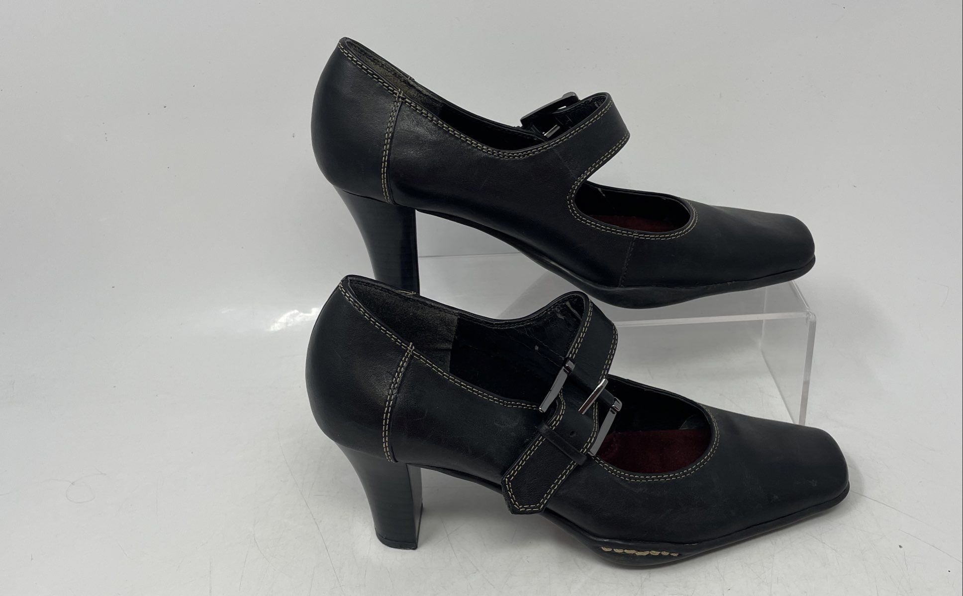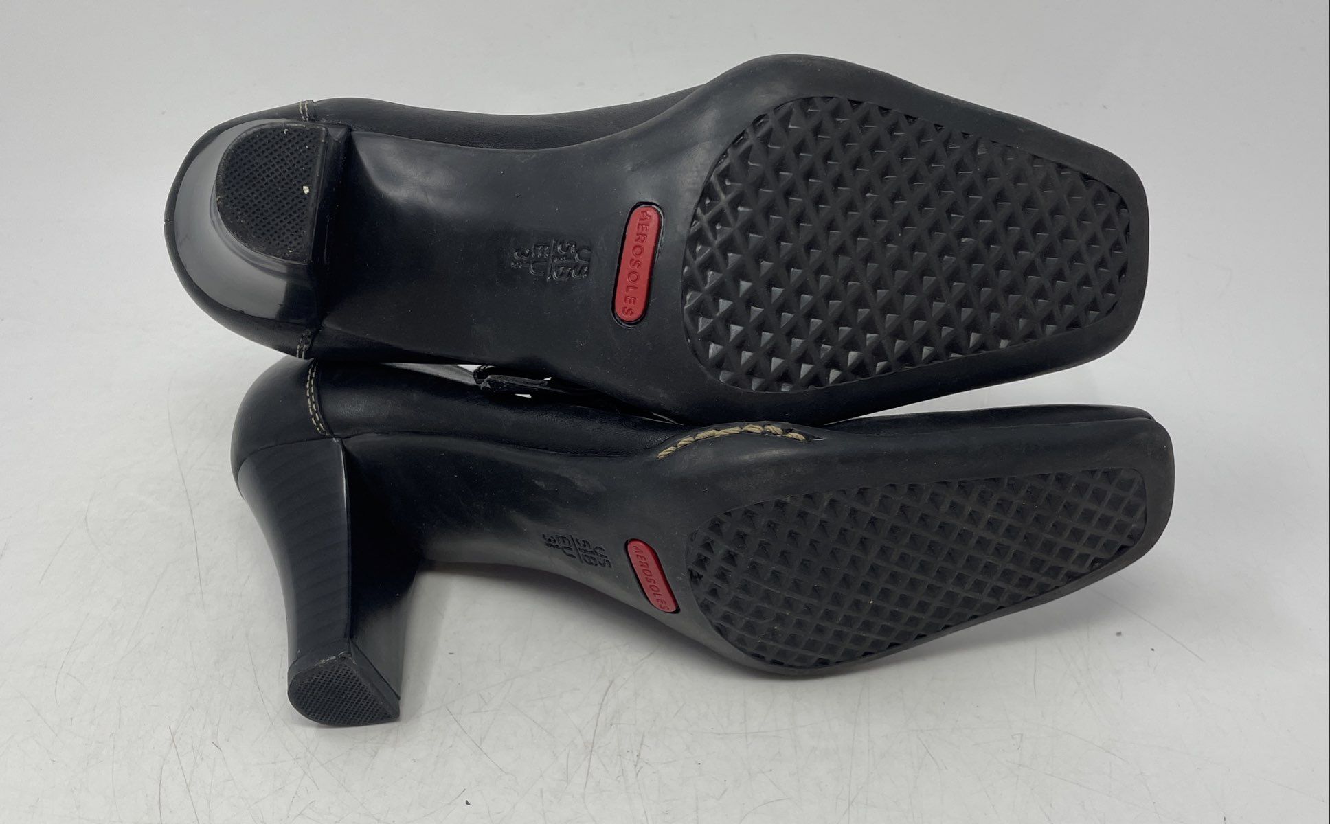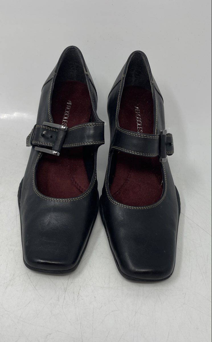 - Description: Aerosoles Womens Black Leather Square Toe Mary Jane Heels Size 5.5B