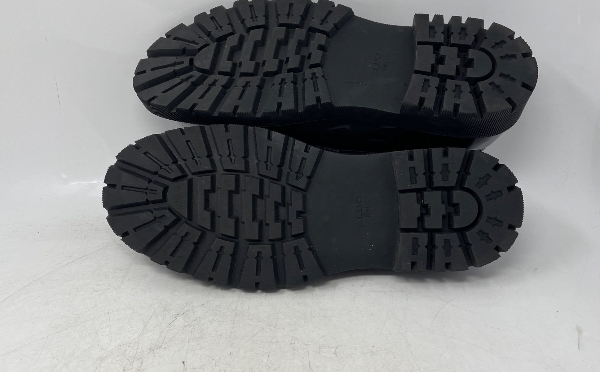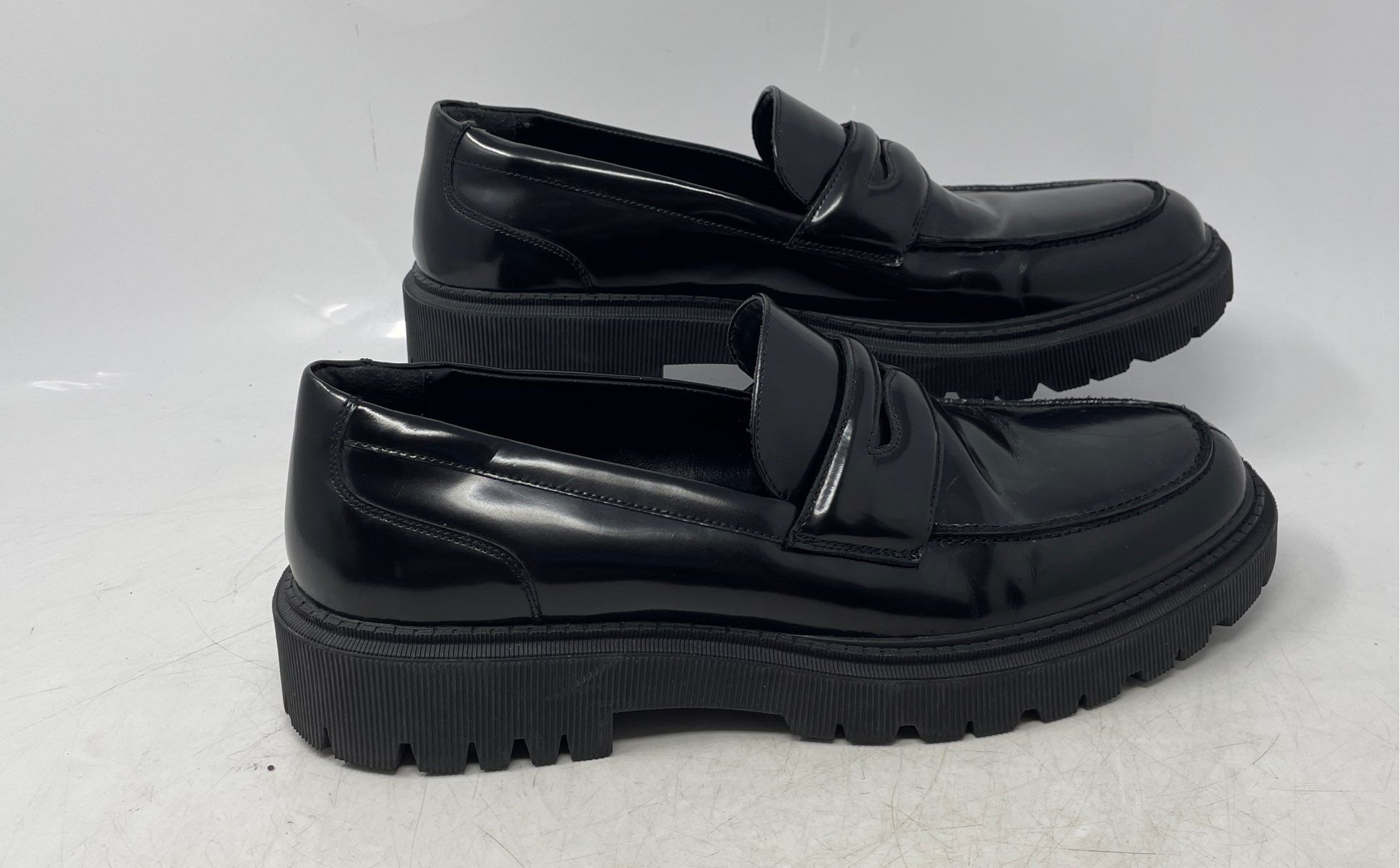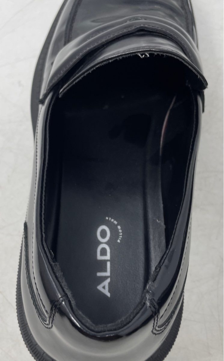 - Description: Aldo Mens Black Leather Slip-On Round Toe Penny Loafer Shoes Size 11