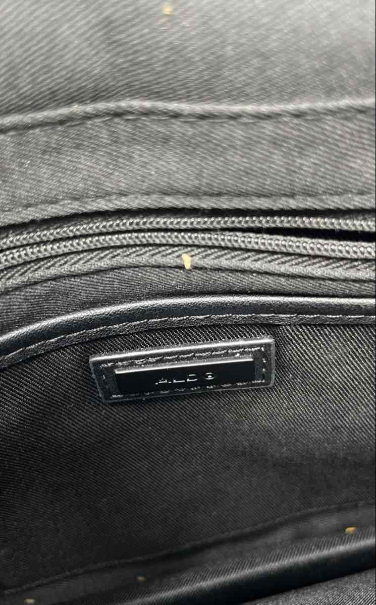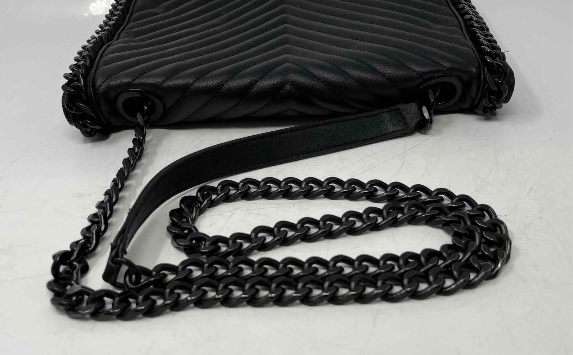 - Description: Aldo Womens Black Chevron Leather Adjustable Chain Strap Crossbody Bag