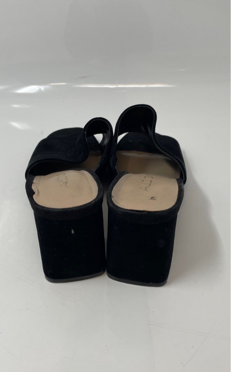 - Description: Aldo Womens Black Suede Open Toe Slip-On Block Heel Slide Sandals Size 7.5