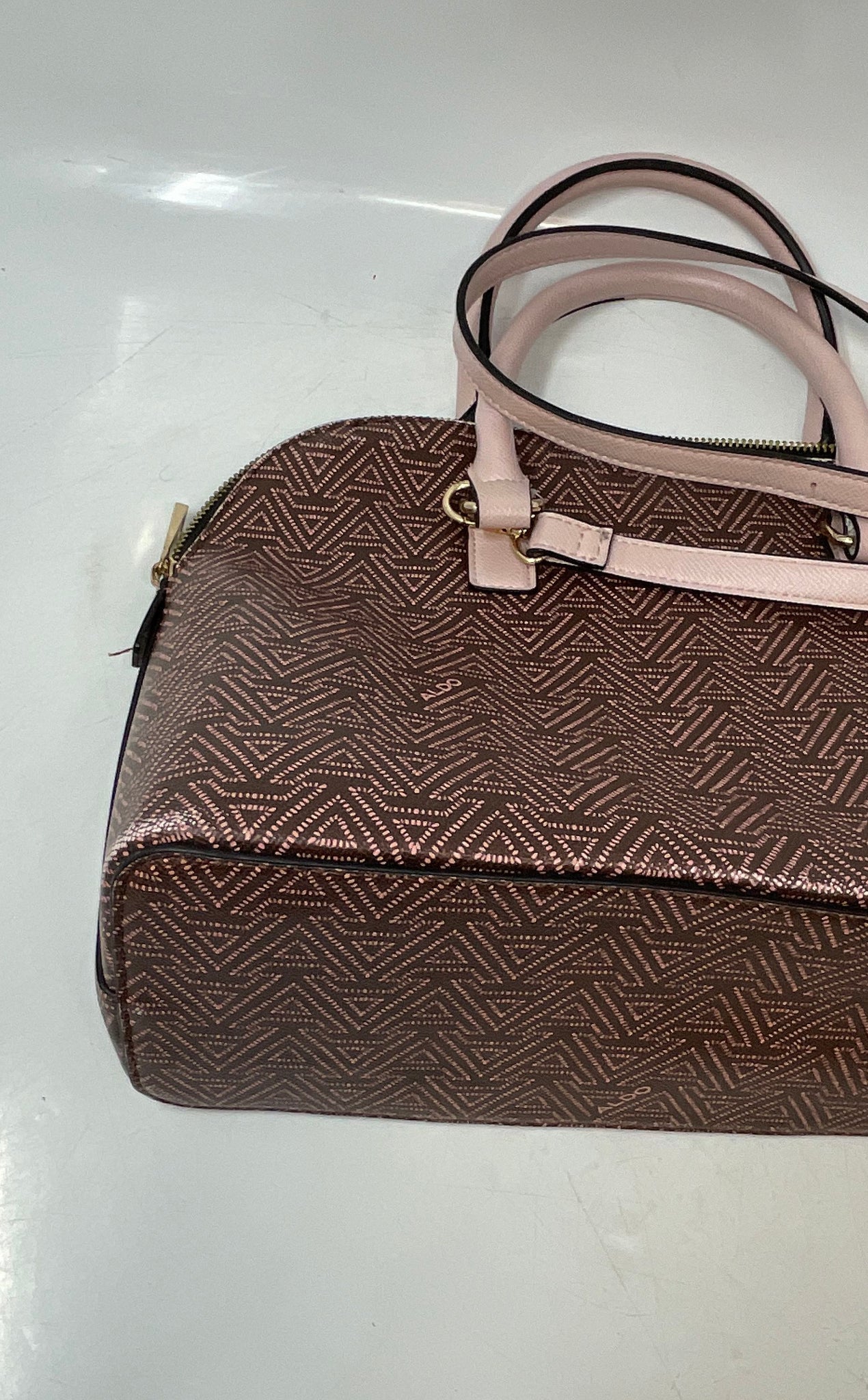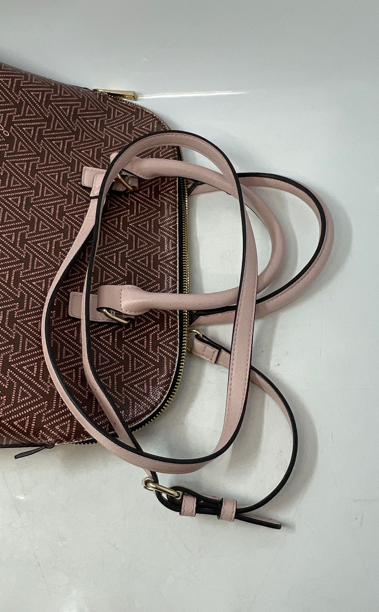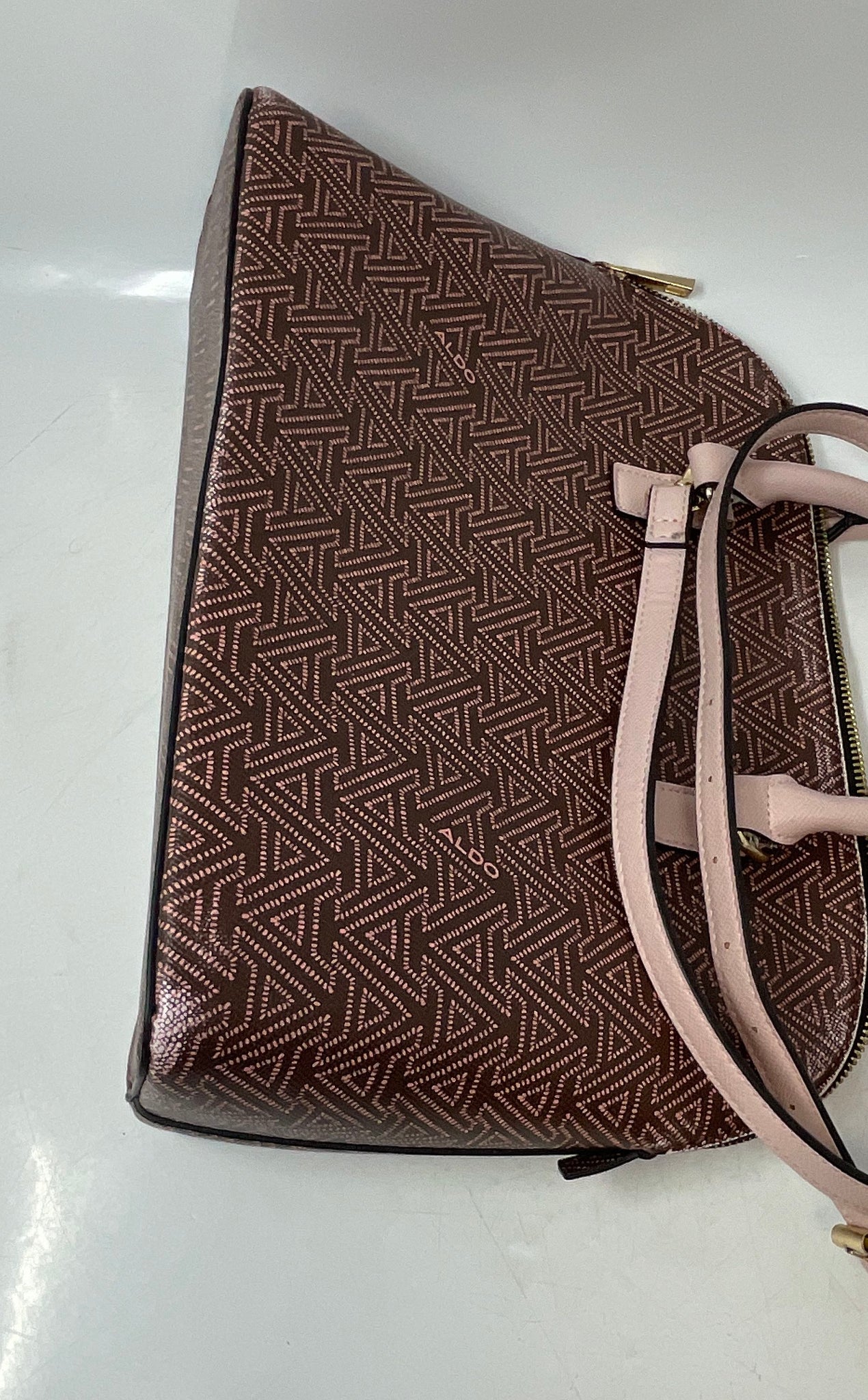 - Description: Aldo Womens Galilini Brown Pink Signature Print Double Handle Satchel Handbag