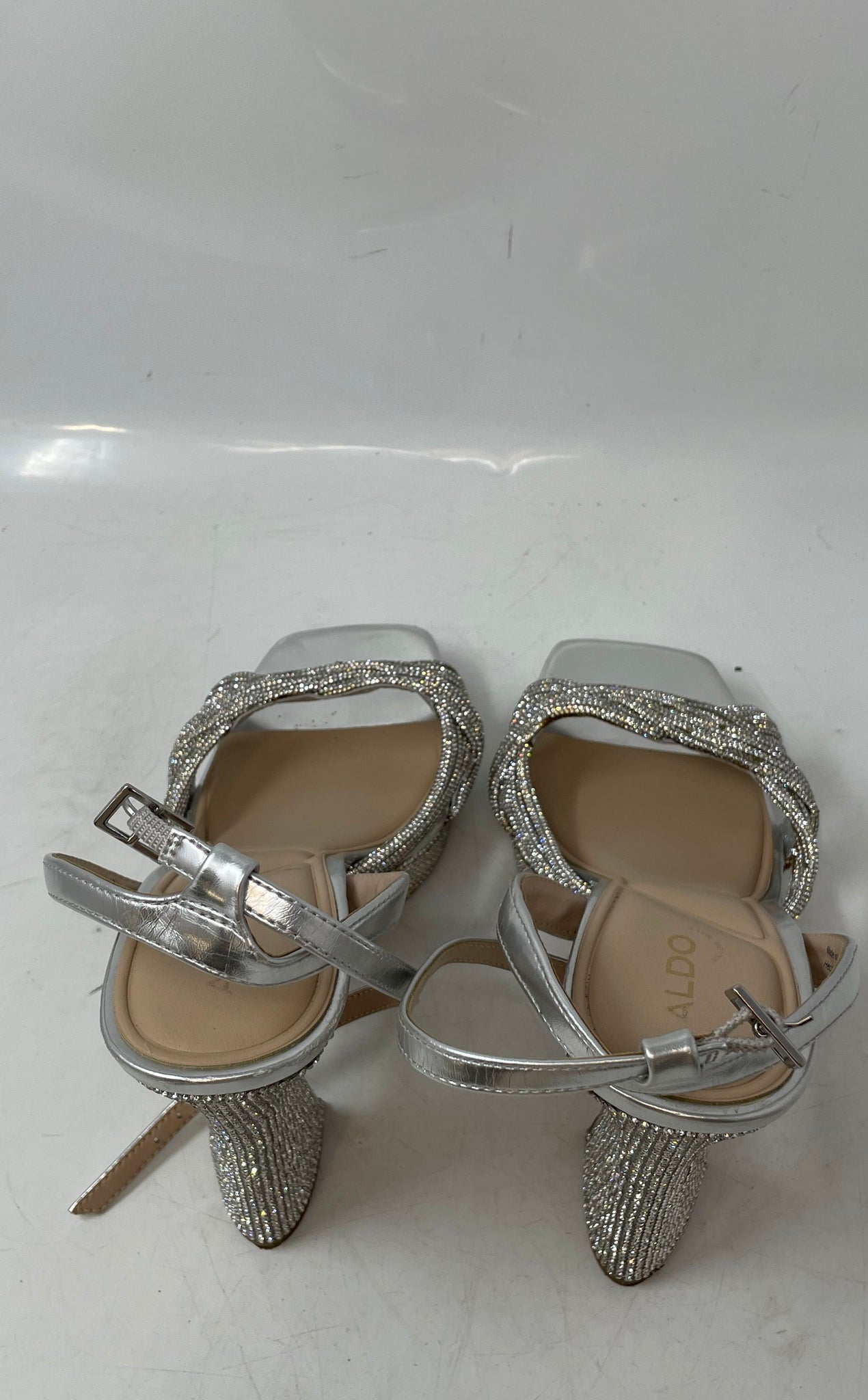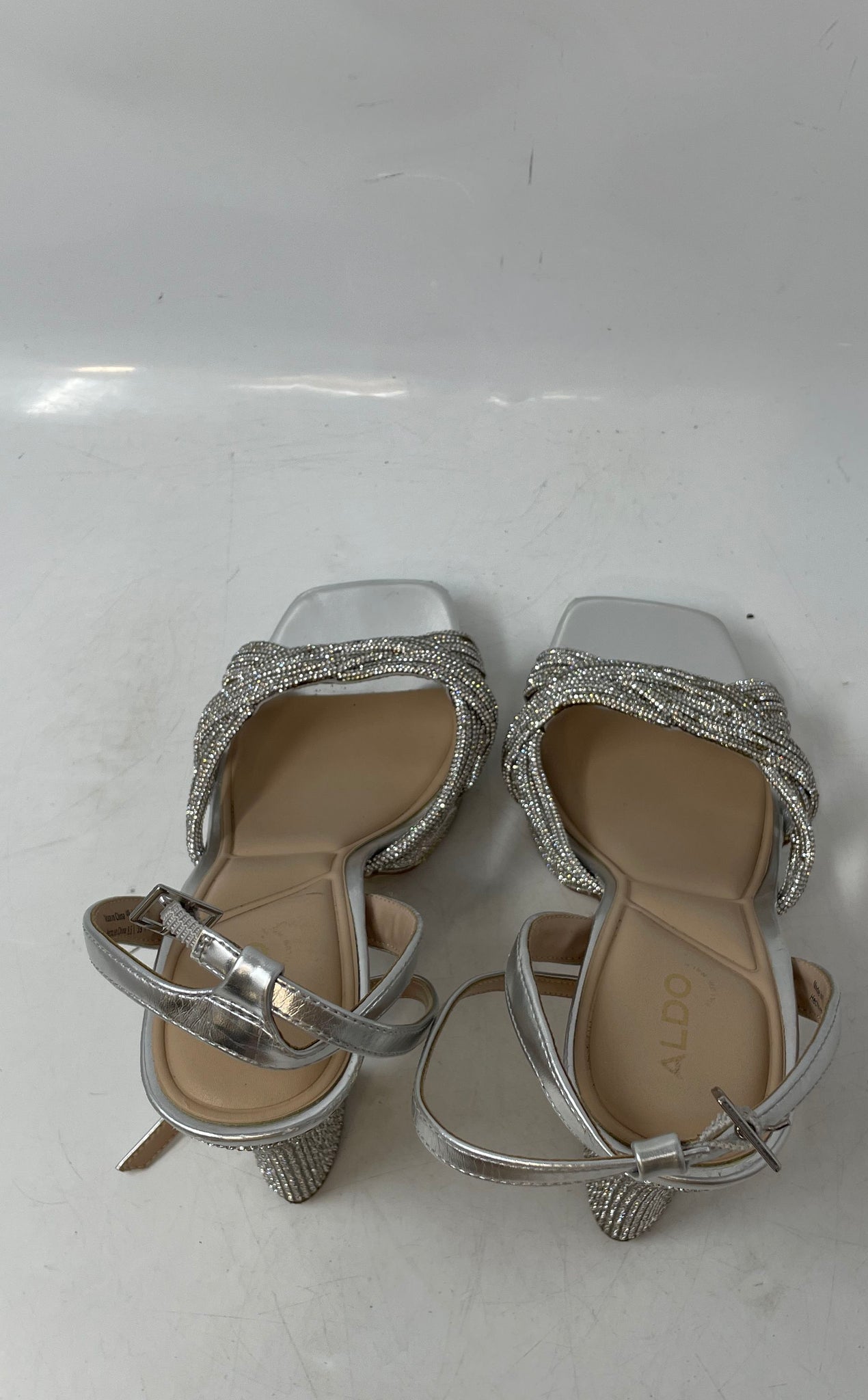 - Description: Aldo Womens Glimma Silver Rhinestone Open Toe Block Platform Heels Size 8.5