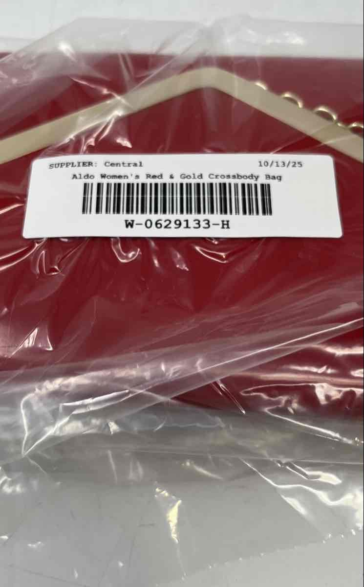 - Description: Aldo Womens Red And Gold Leather Adjustable Chain Strap Crossbody Bag