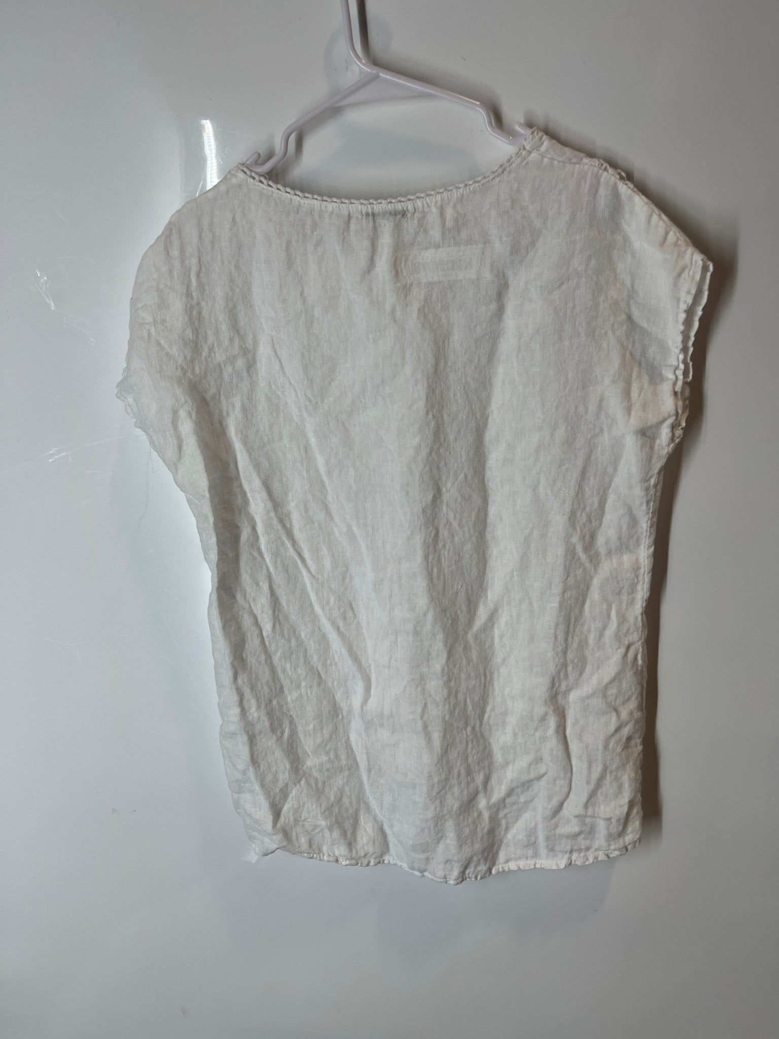 - Description: Alessia Pacini Womens White Linen High Low Hem Cropped Blouse Top Size Large