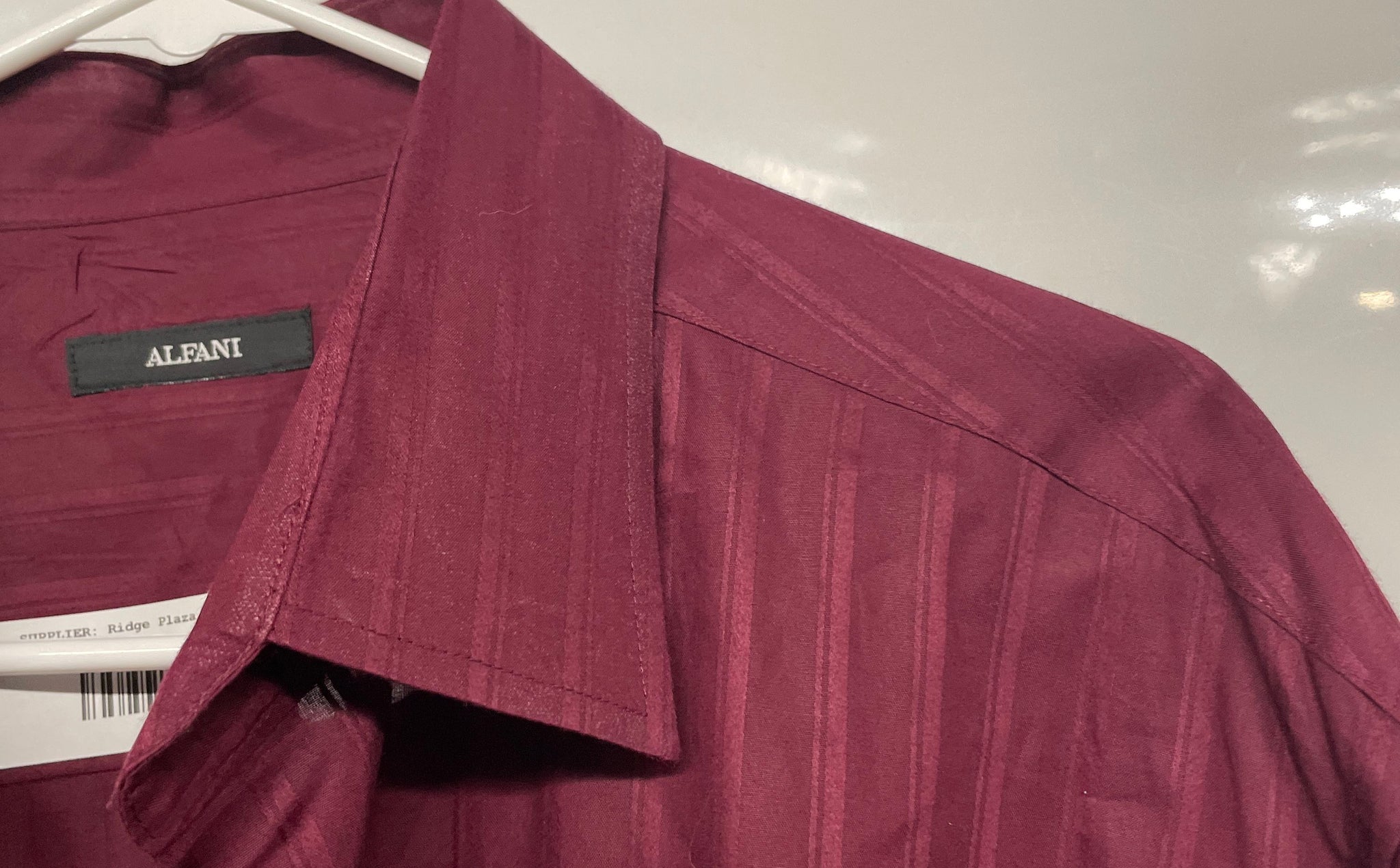 - Description: Alfani Mens Wine Striped Cotton Long Sleeve Collared Button-Up Shirt Size XL