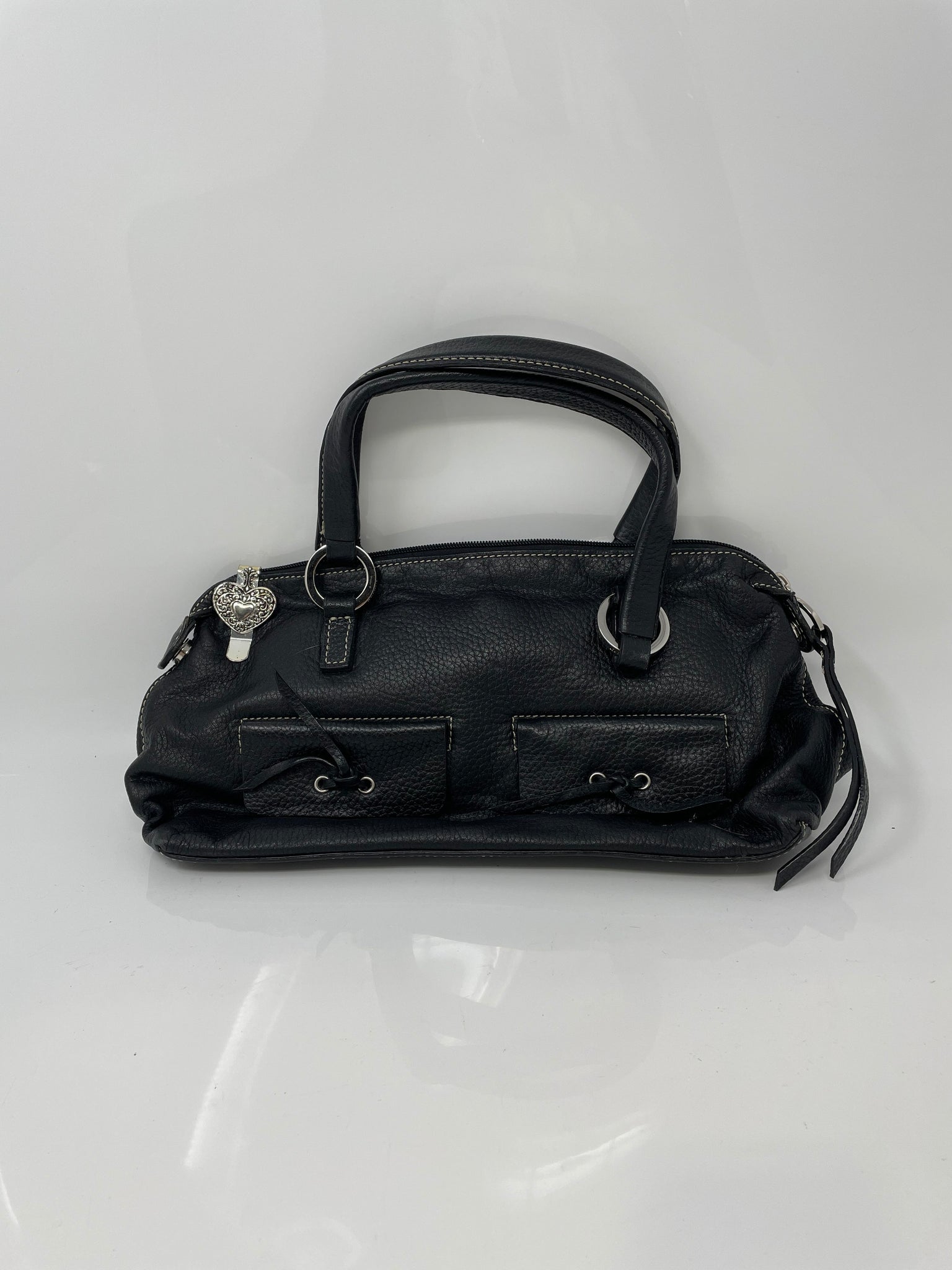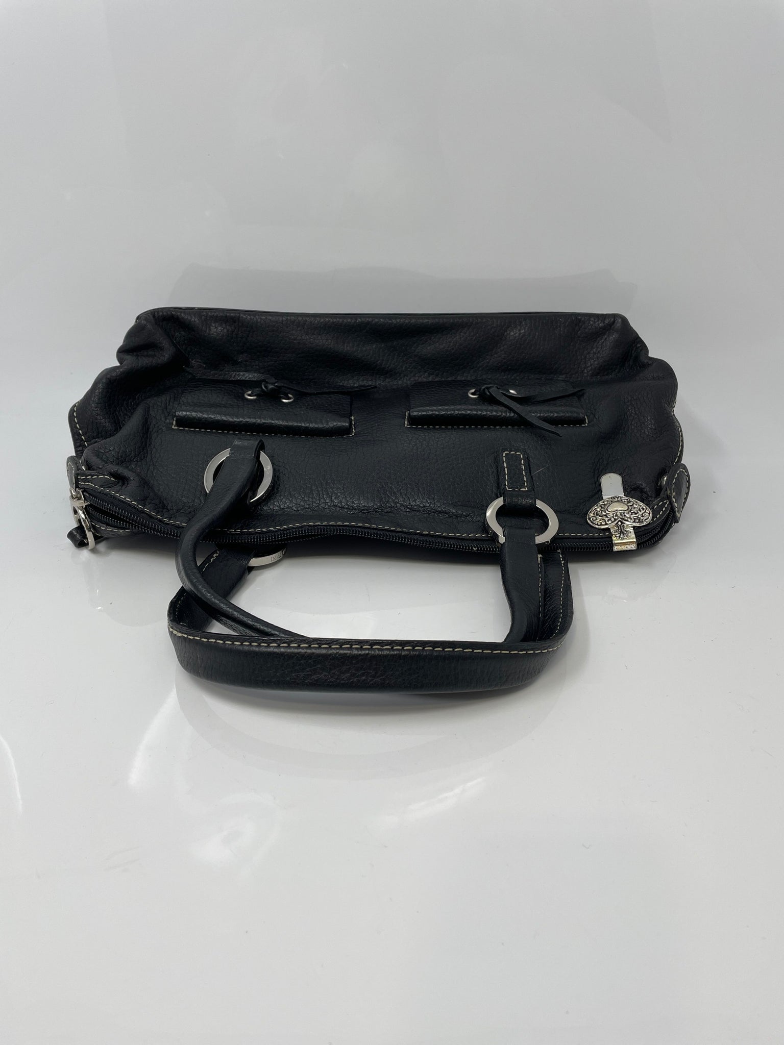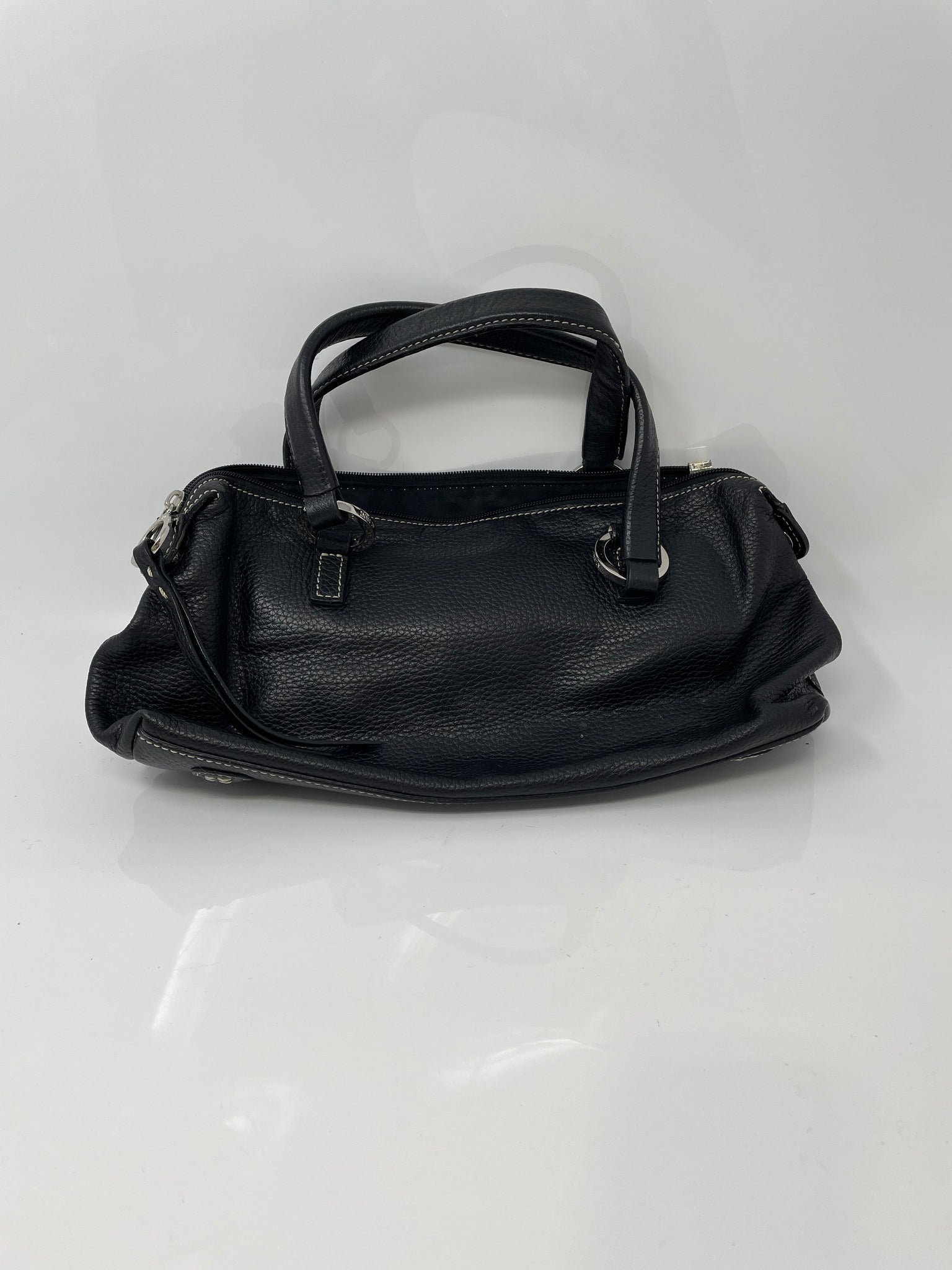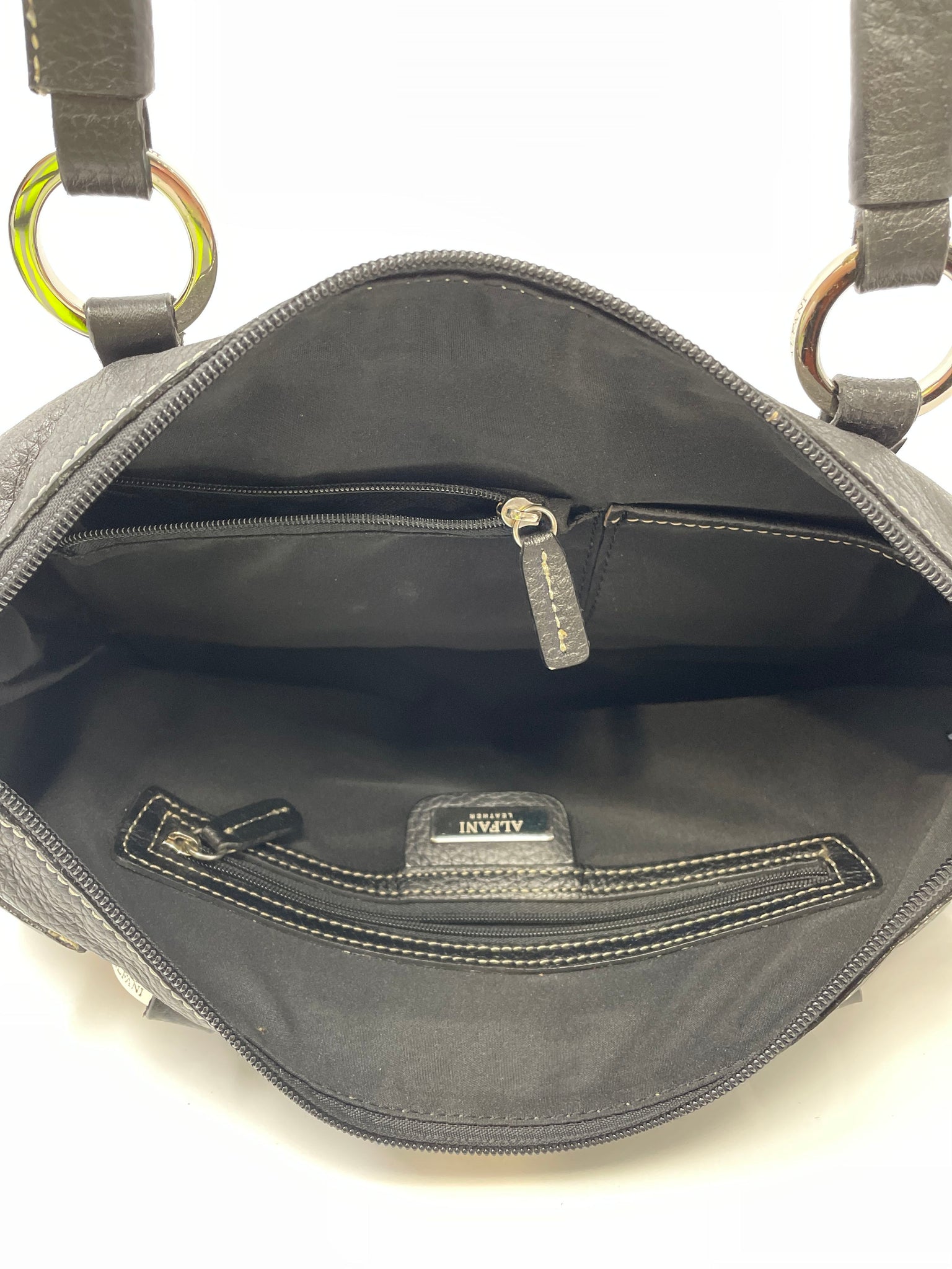 - Description: Alfani Womens Black Pebbled Leather Inner Pockets Double Handle c