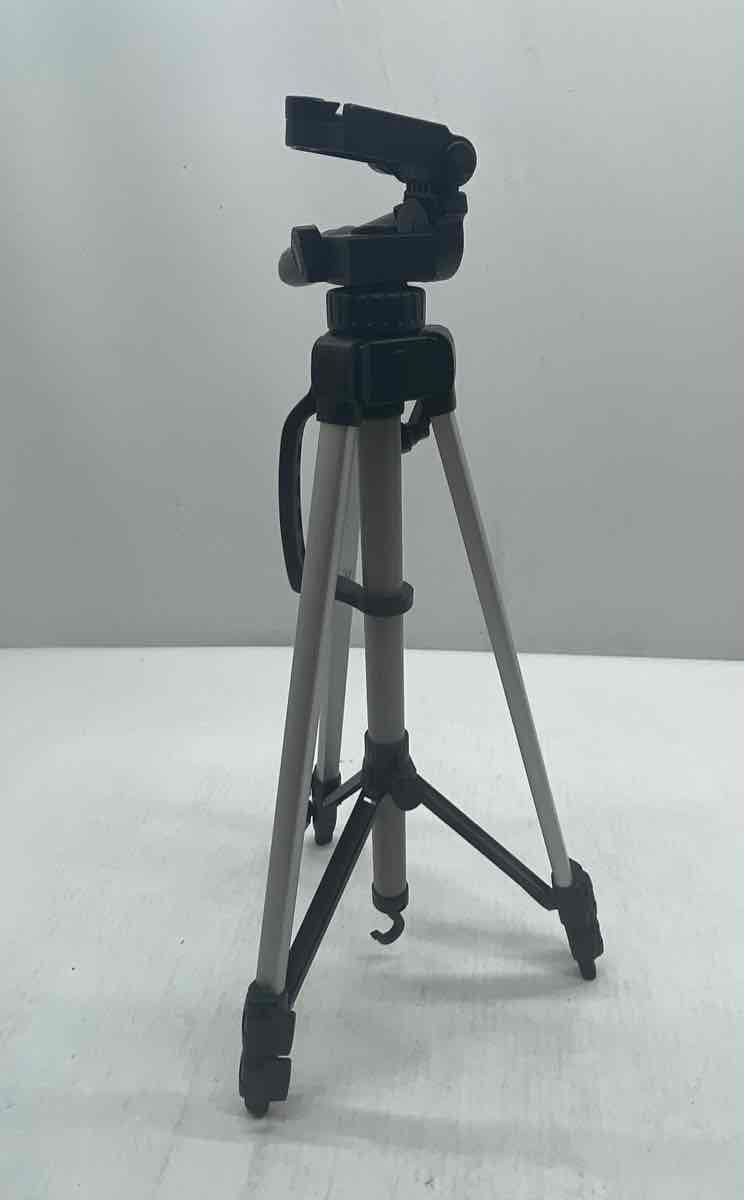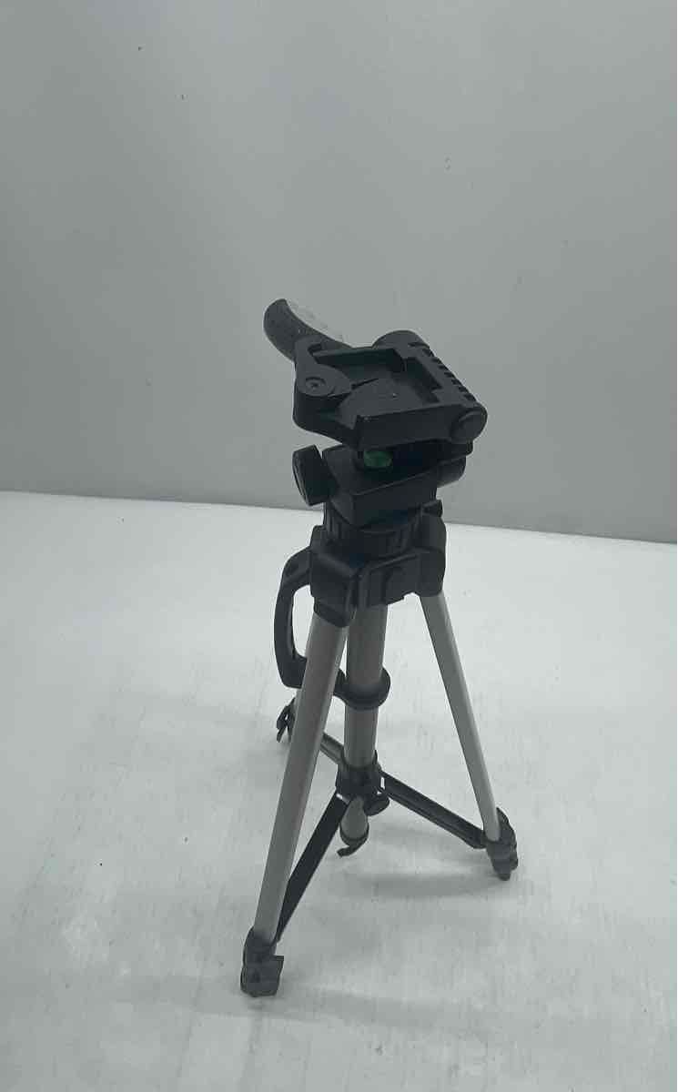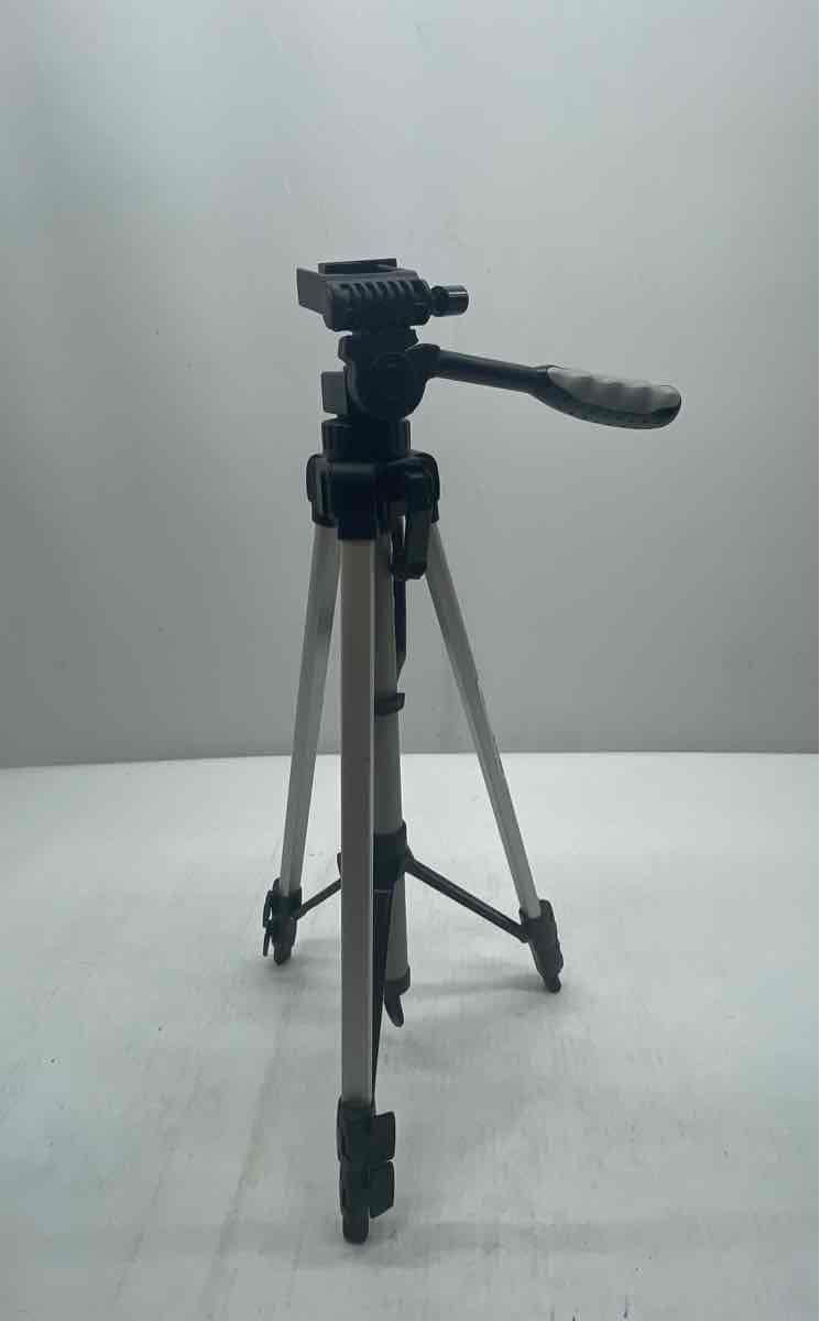 • Description: Ambico Black Gray Adjustable Height Quick Release Tripod With Pan Tilt Head